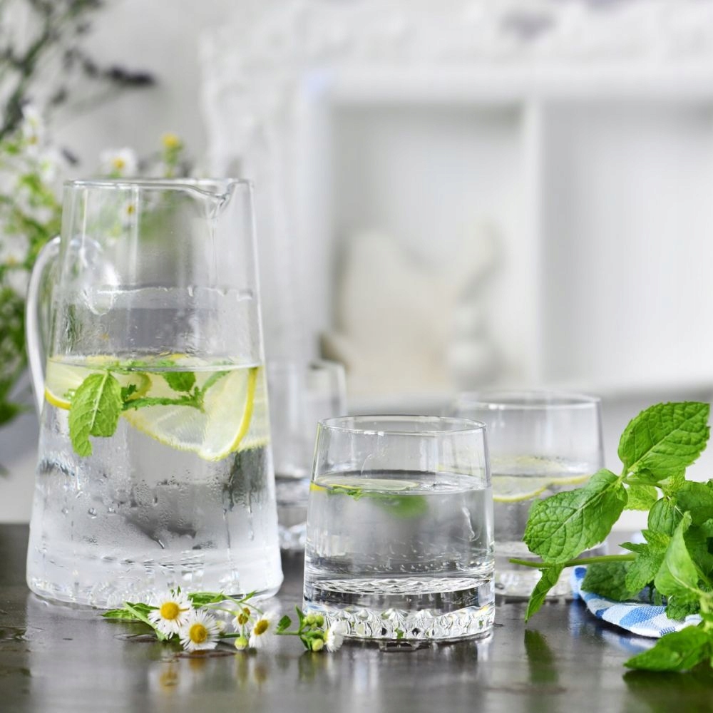 Komplet do wody Fjord to kwintesencja nowoczesnego designu i funkcjonalności. Zestaw składający się z dzbanka i sześciu szklanek, wyróżnia się elegancką formą i efektem lodowej struktury w dnie, który przyciąga wzrok. To doskonały wybór, by nadać każdemu posiłkowi wyjątkowego charakteru oraz by uczynić każdą chwilę przyjemnością. Idealny zarówno na codzienne użycie, jak i jako elegancki element wystroju stołu podczas specjalnych okazji.