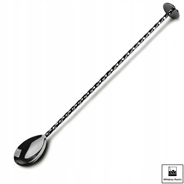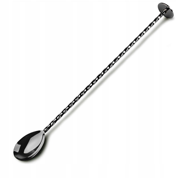 Łyżka Barmańska ze Stopką do Drinków Kręcona 28 cm Czarna