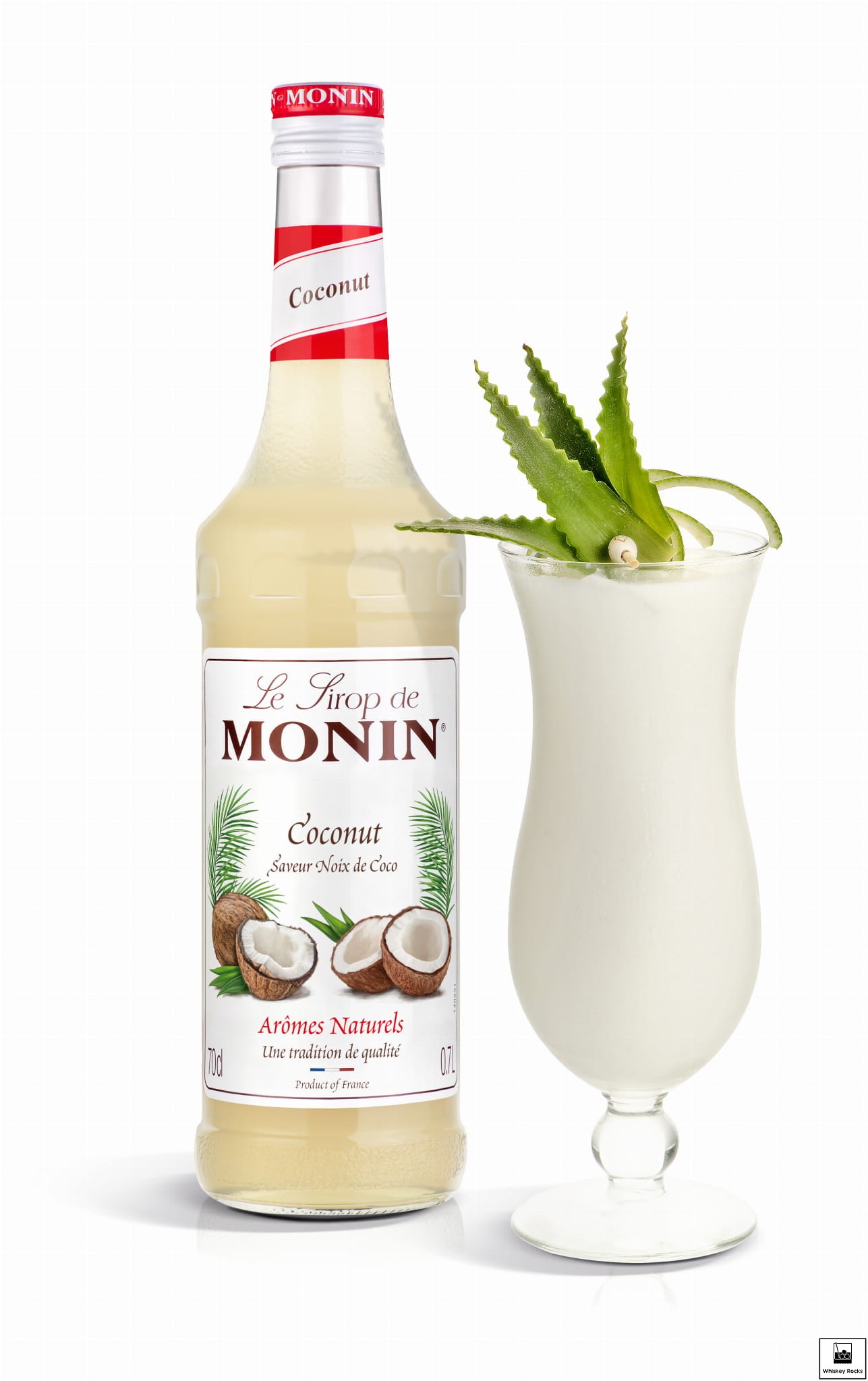 Ciesz się smakiem tropików, dodając syrop kokosowy MONIN do koktajli, kaw, smoothie i ponczu owocowego i odpłyń w cień palmy kokosowej.