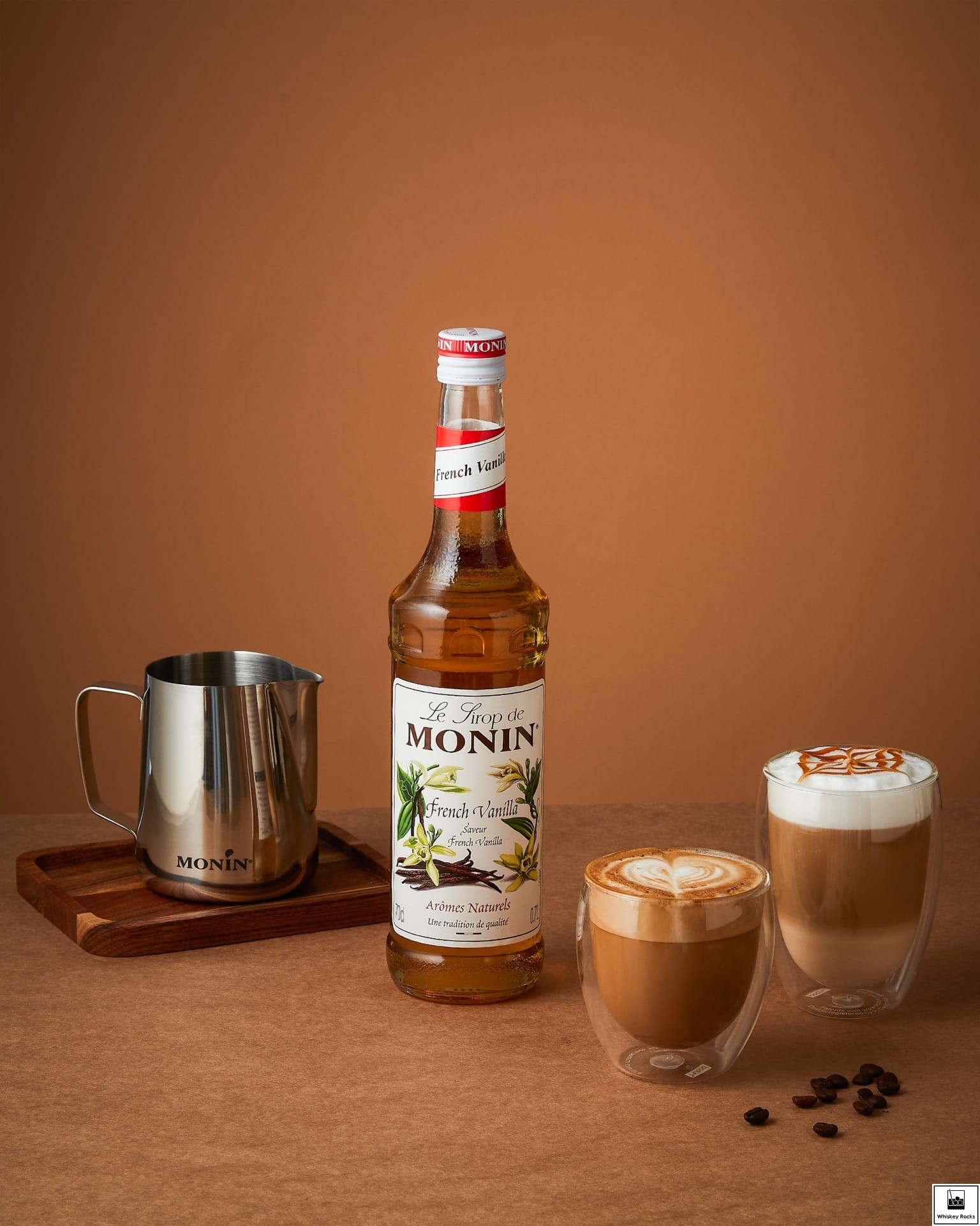 Syrop MONIN Francuska Wanilia ma perfekcyjny kremowy smak, który idealnie komponuje się z gorzkim posmakiem gorącej lub zimnej kawy.