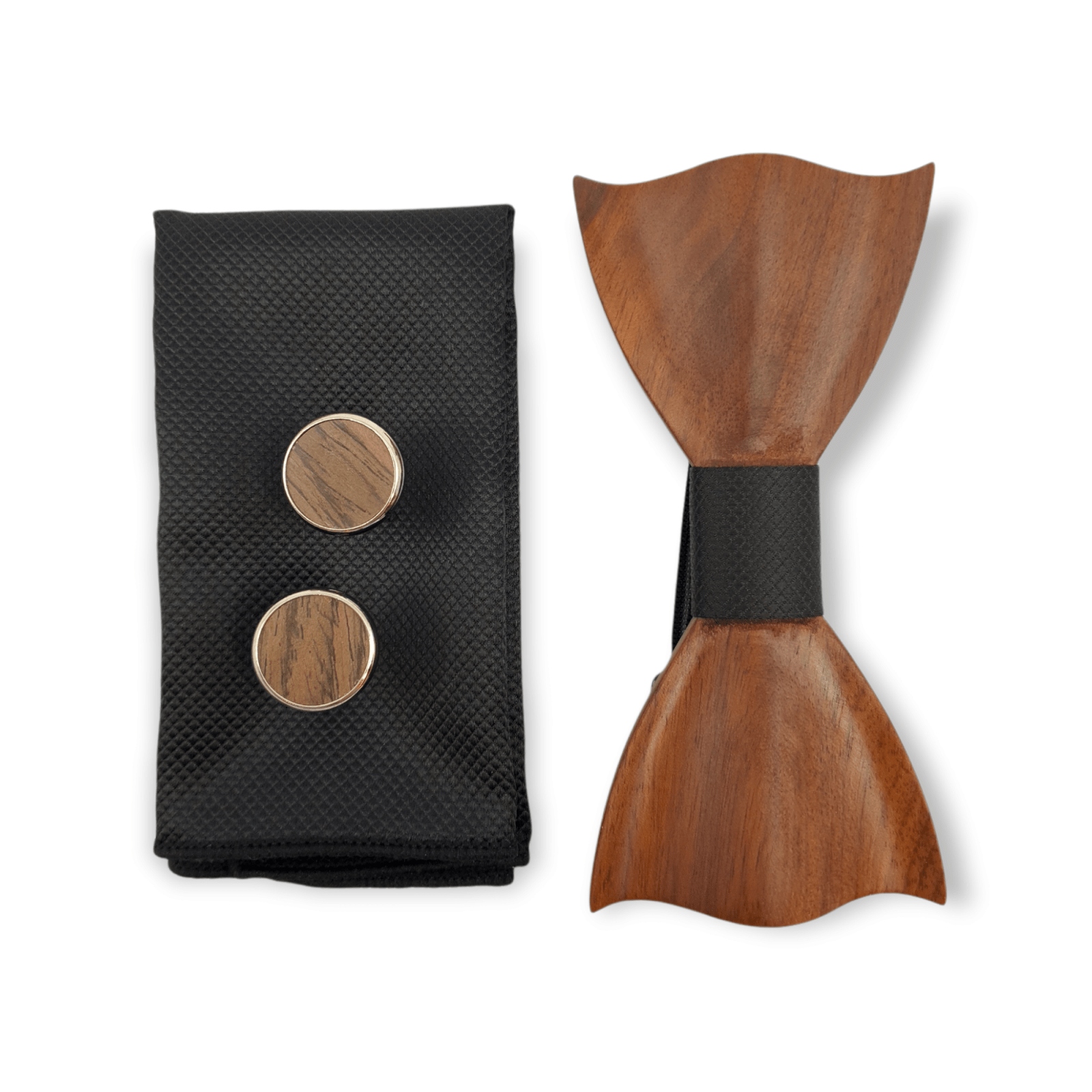 - ➡️ Drewniane spinki do mankietów – elegancki dodatek dopełniający stylizację.