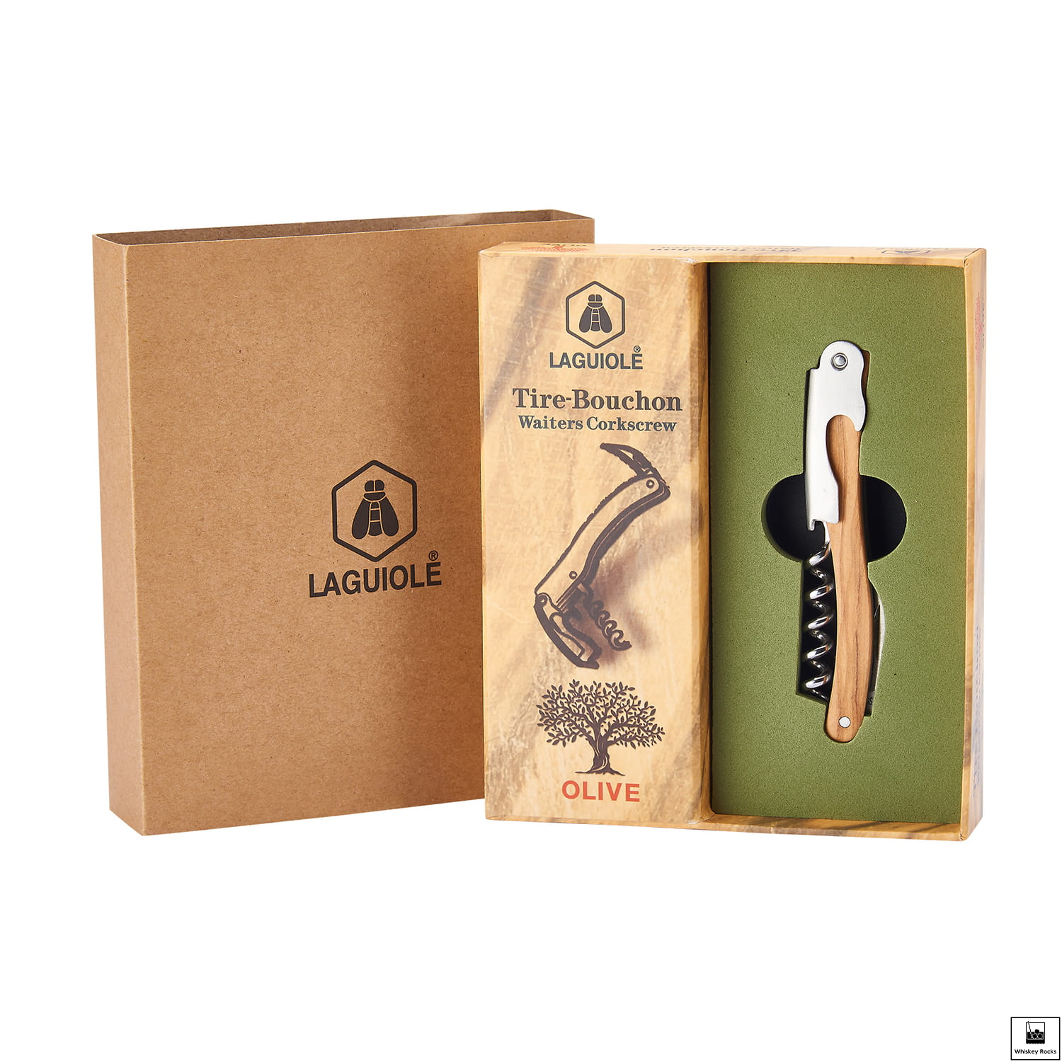 Nóż i korkociąg z otwieraczem Laguiole oliwkowy w kartoniku