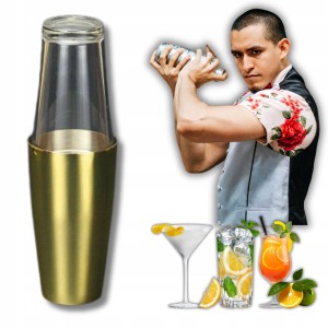 Shaker Bostoński do Drinków Profesjonalny Szkło i Stal 830ml+500 ml Złoty
