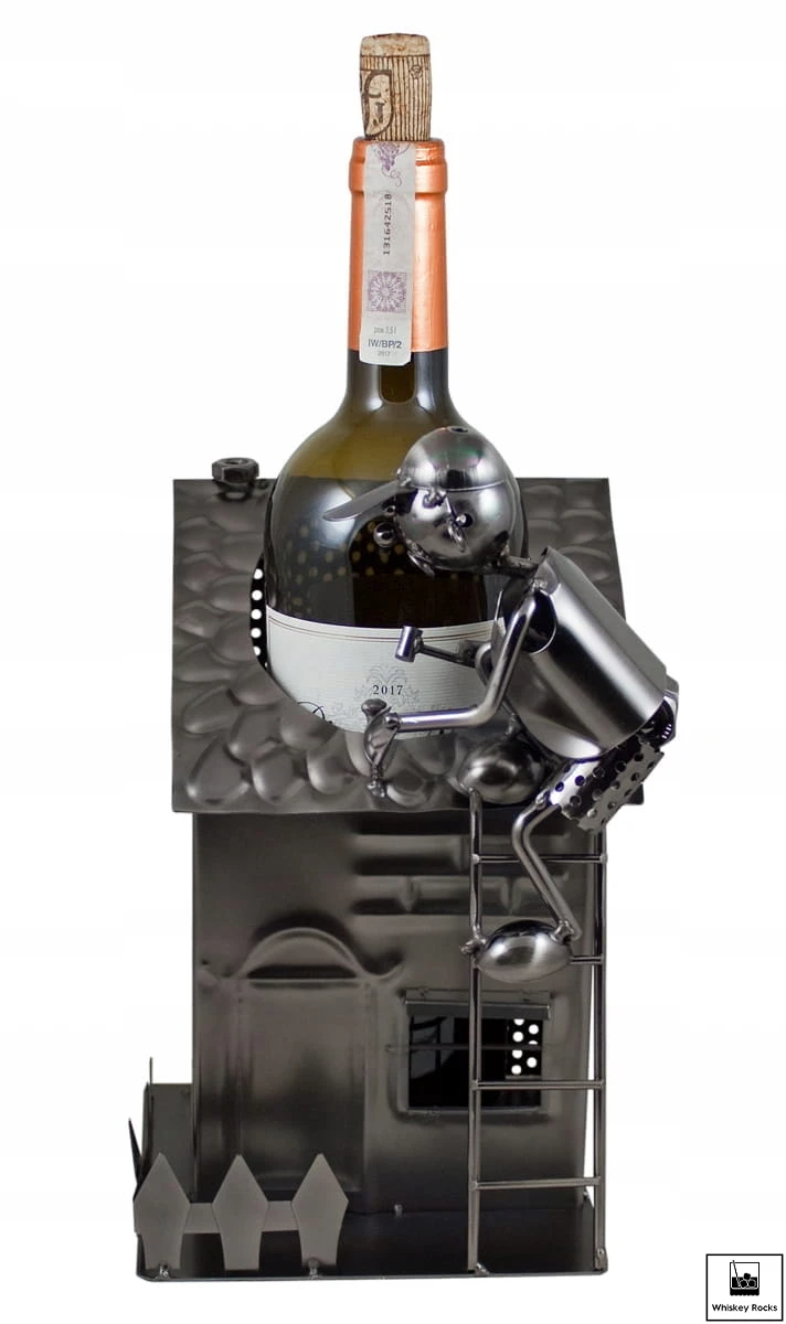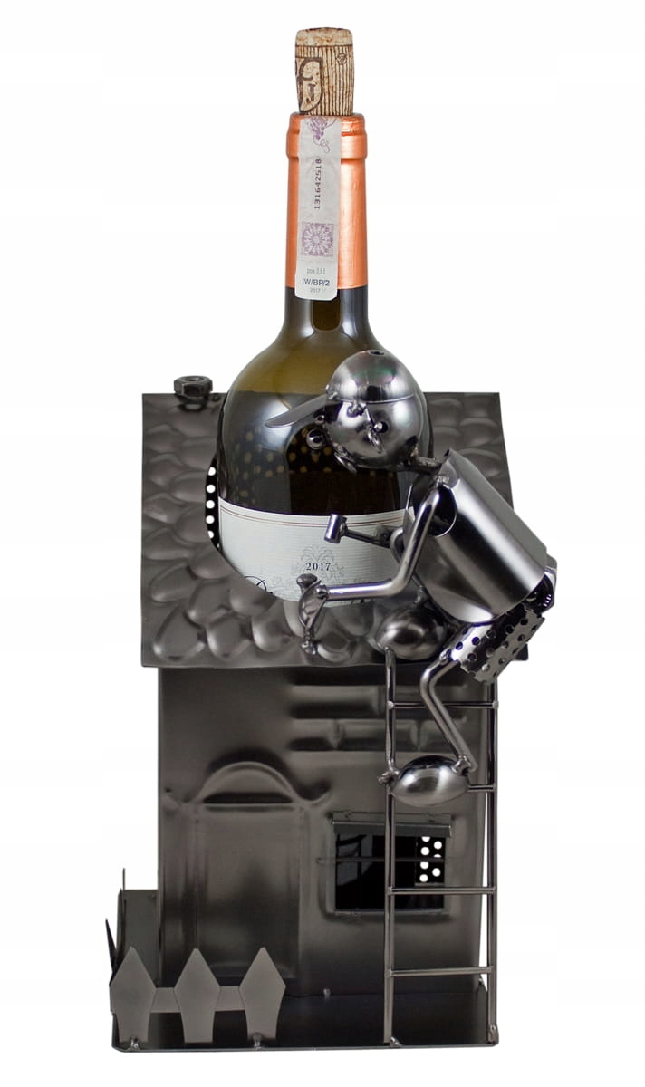 Stojak na Wino Metalowy na Butelkę 0.75L "BUDOWNICZY" Idealny na Prezent