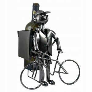 Stojak na Wino Metalowy na Butelkę 0.75L "CYKLISTA" Idealny na Prezent