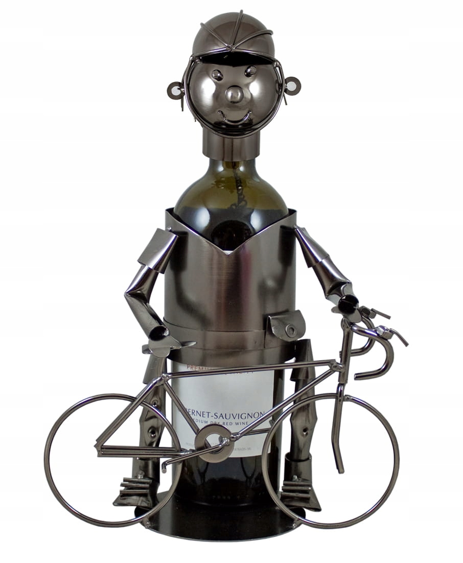 Stojak na Wino Metalowy na Butelkę 0.75L "CYKLISTA" Idealny na Prezent