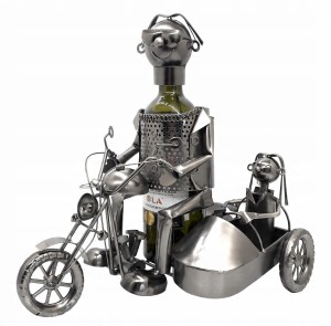 Stojak na Wino Metalowy na Butelkę 0.75L "MOTOCYKLIŚCI" Idealny na Prezent