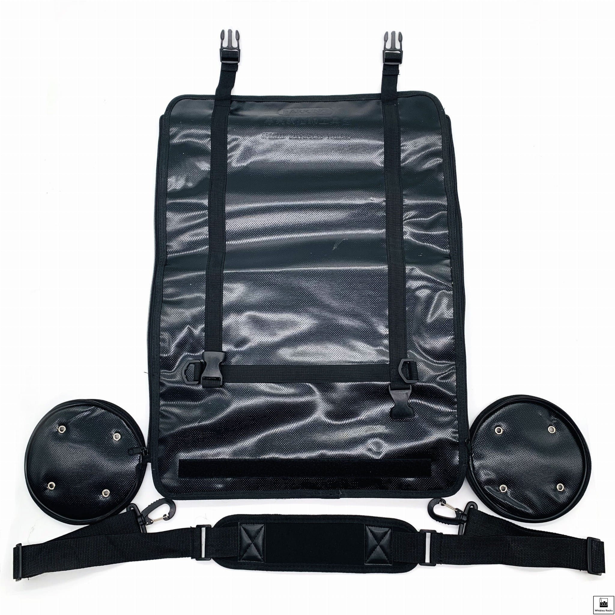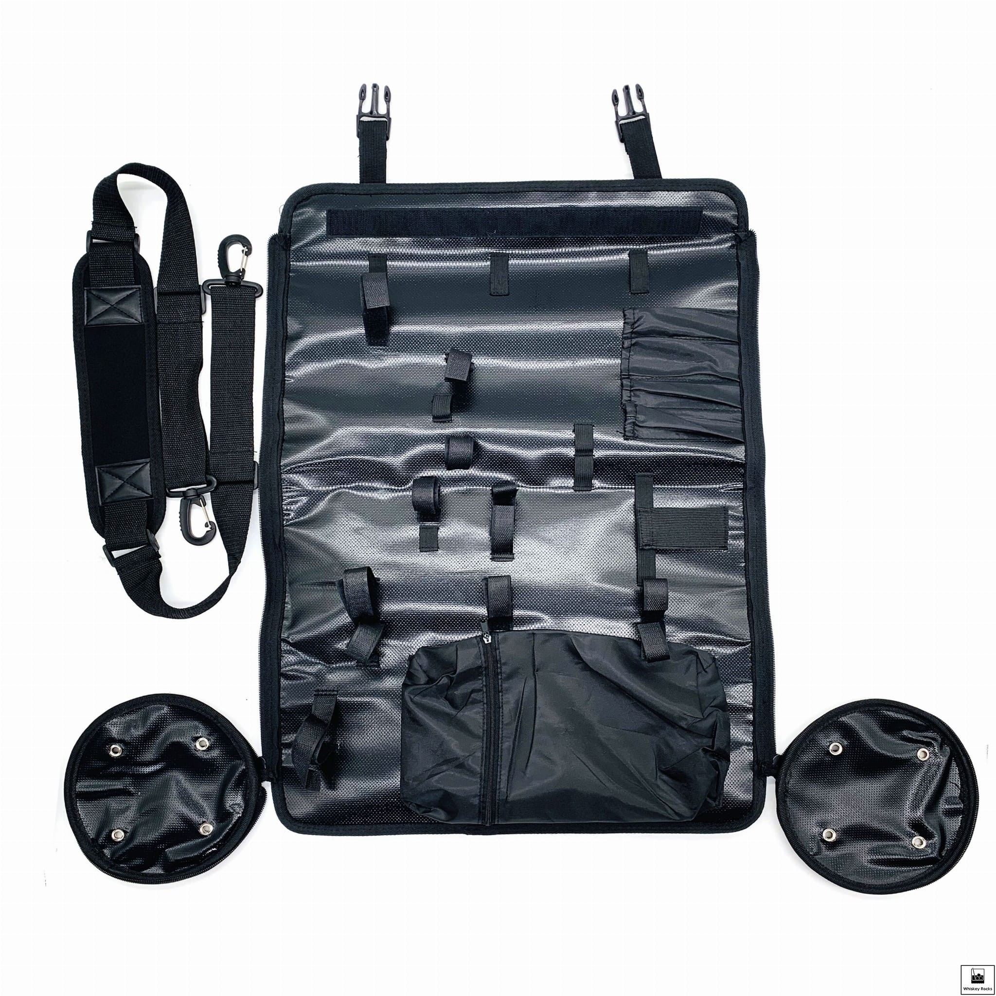Mnogość przegródek, solidne, długie paski na rzepy oraz ściągające gumki umożliwiają dużą swobodę w rozłożeniu różnego rodzaju akcesoriów wg własnego uznania.