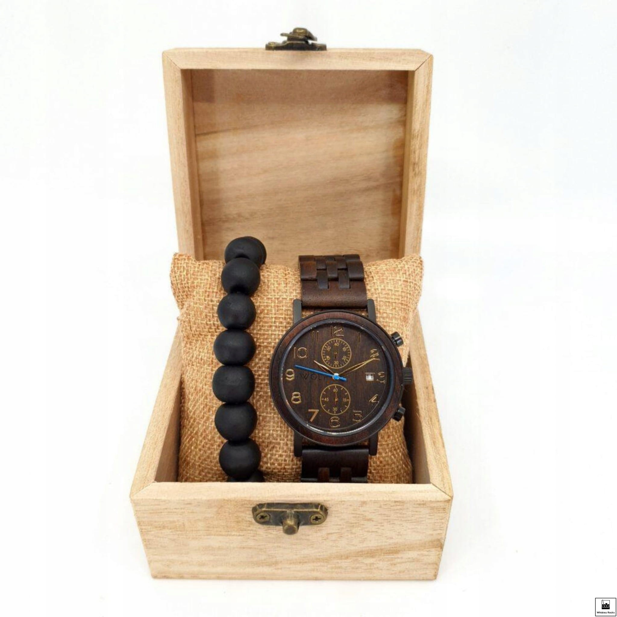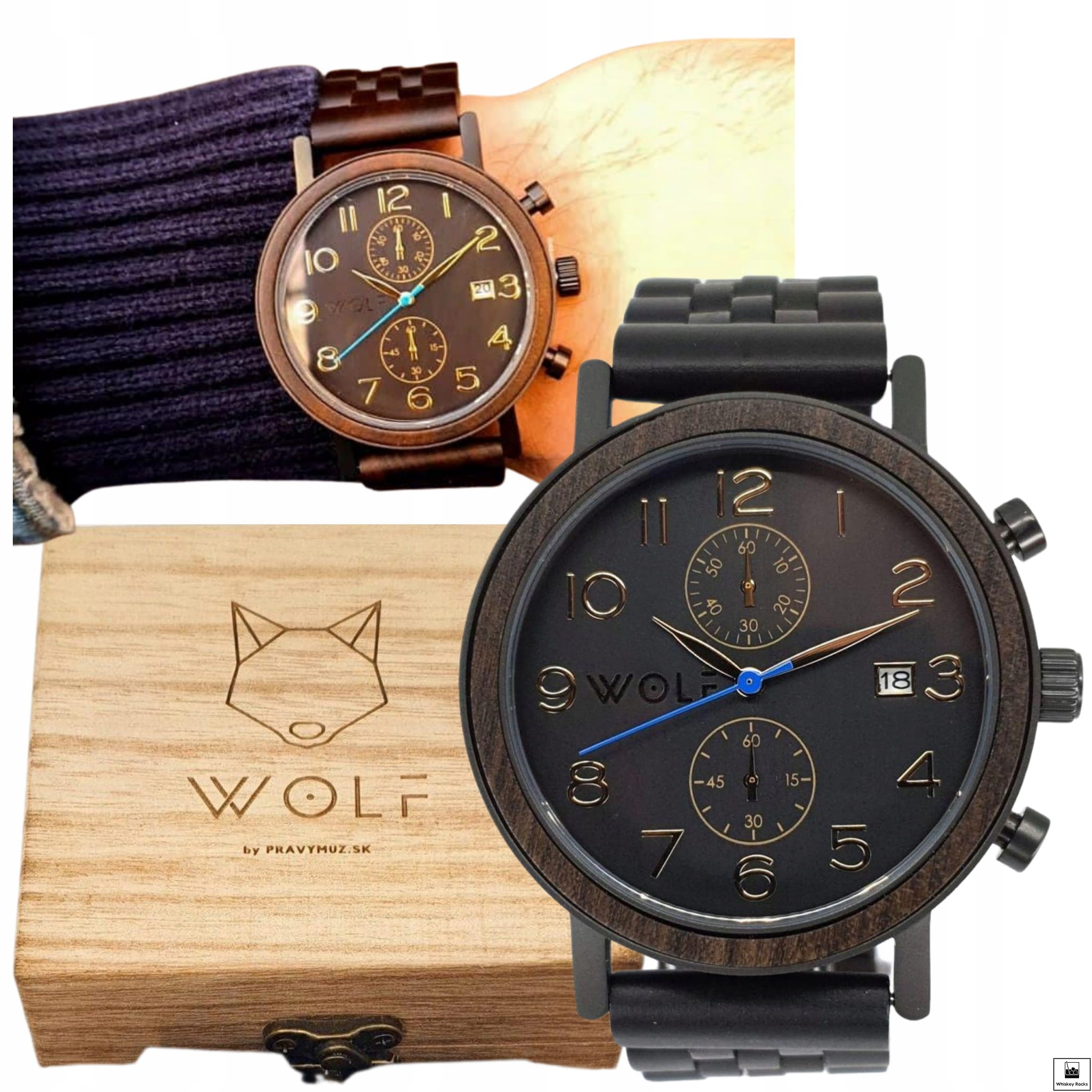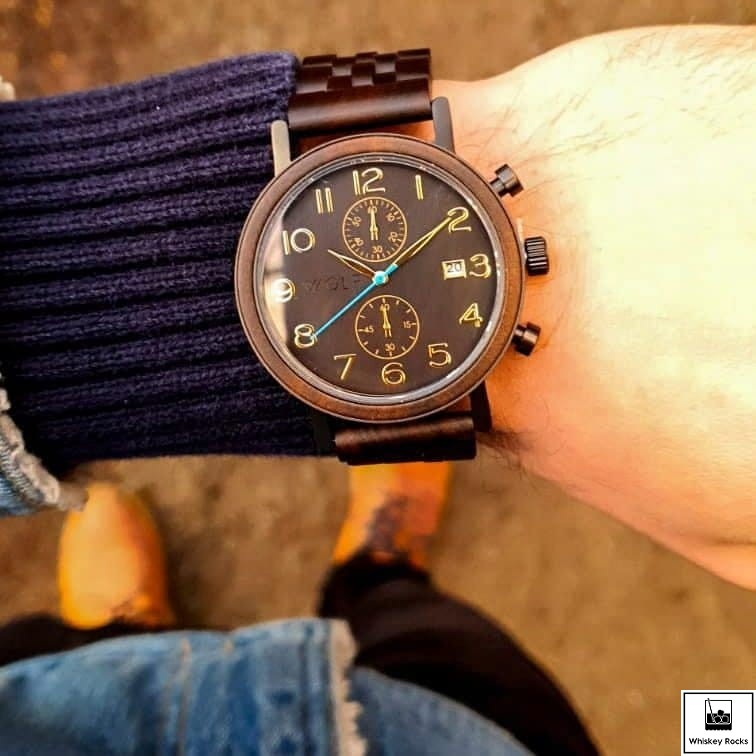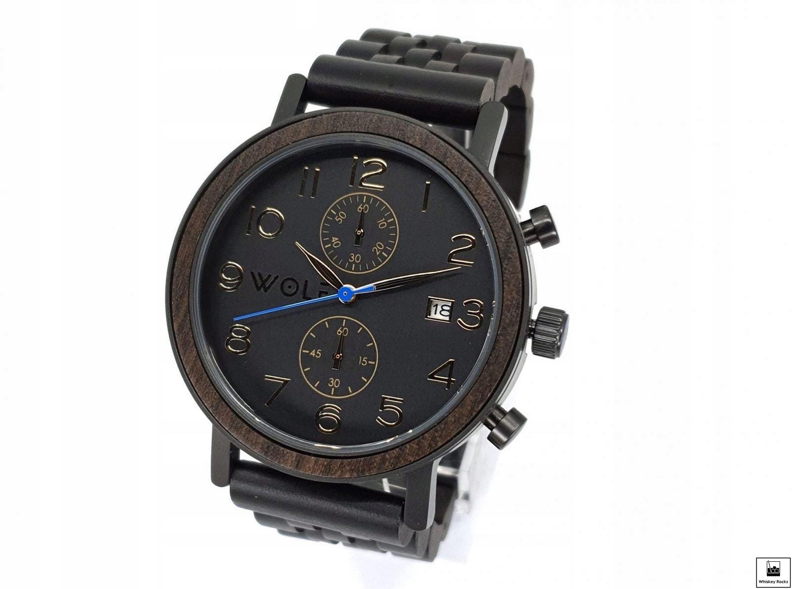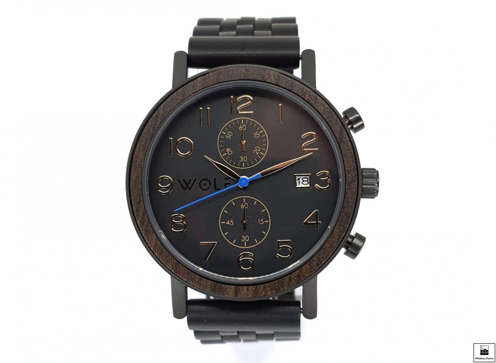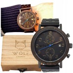 Zegarek Wolf Chrono Męski Luksusowy z Chronografem - Drewno Hebanowe Czarny