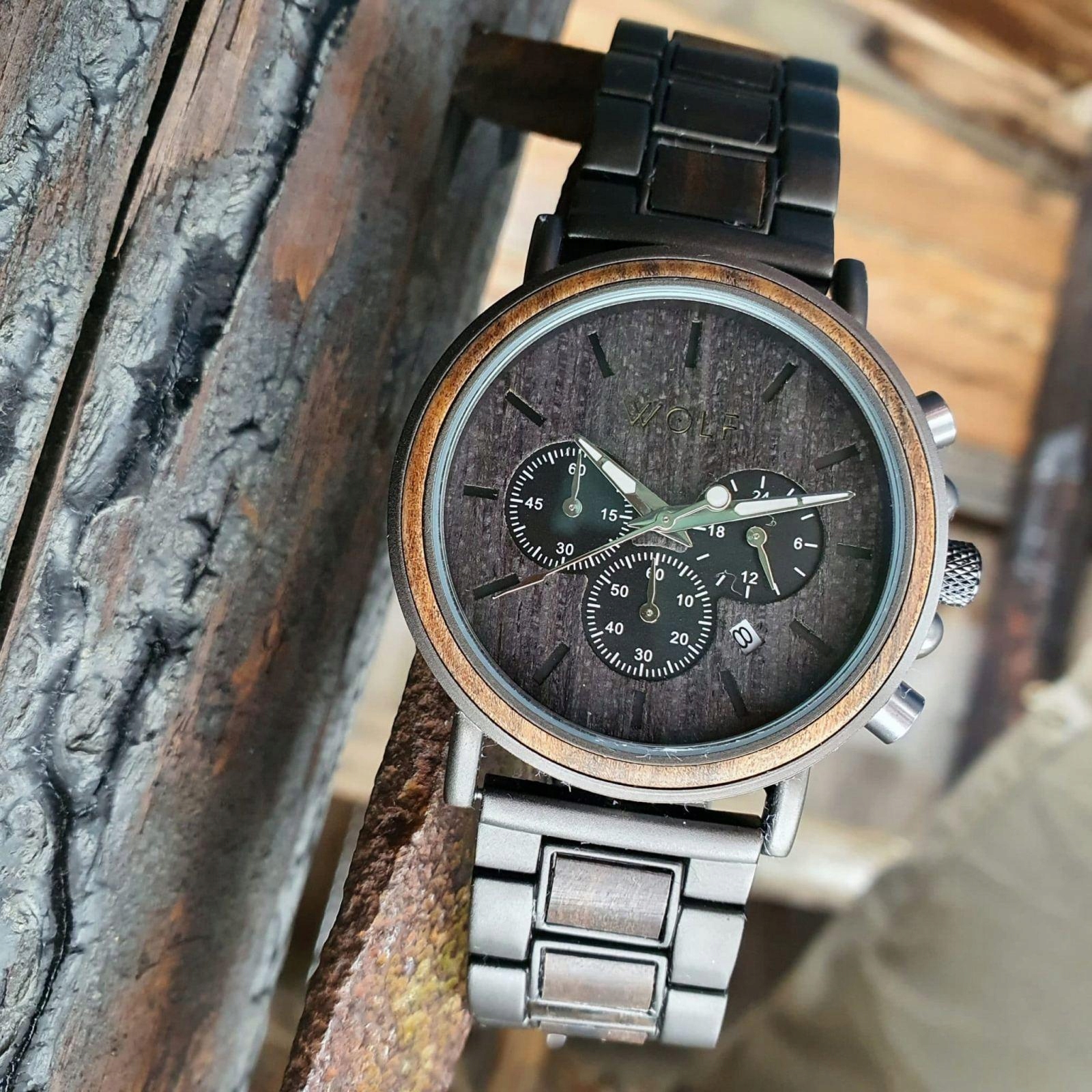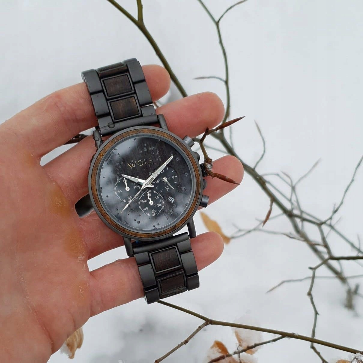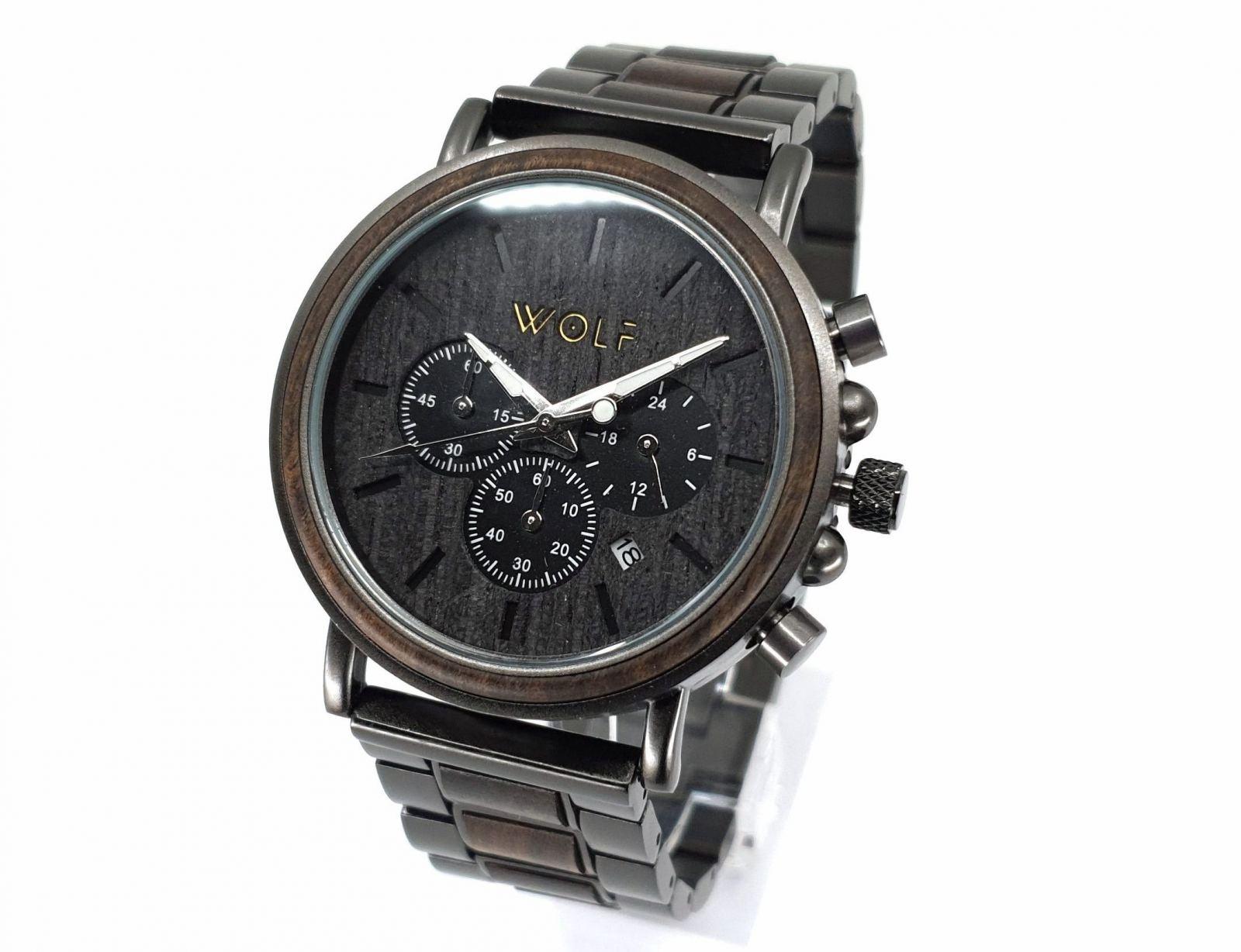 Zegarek Wolf Corredor Męski Luksusowy z Chronografem - Drewno Hebanowe
