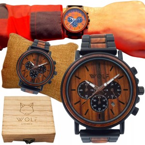 Zegarek Wolf Empresario Męski Luksusowy Chronograf - Czer. Drewno Sandałowe