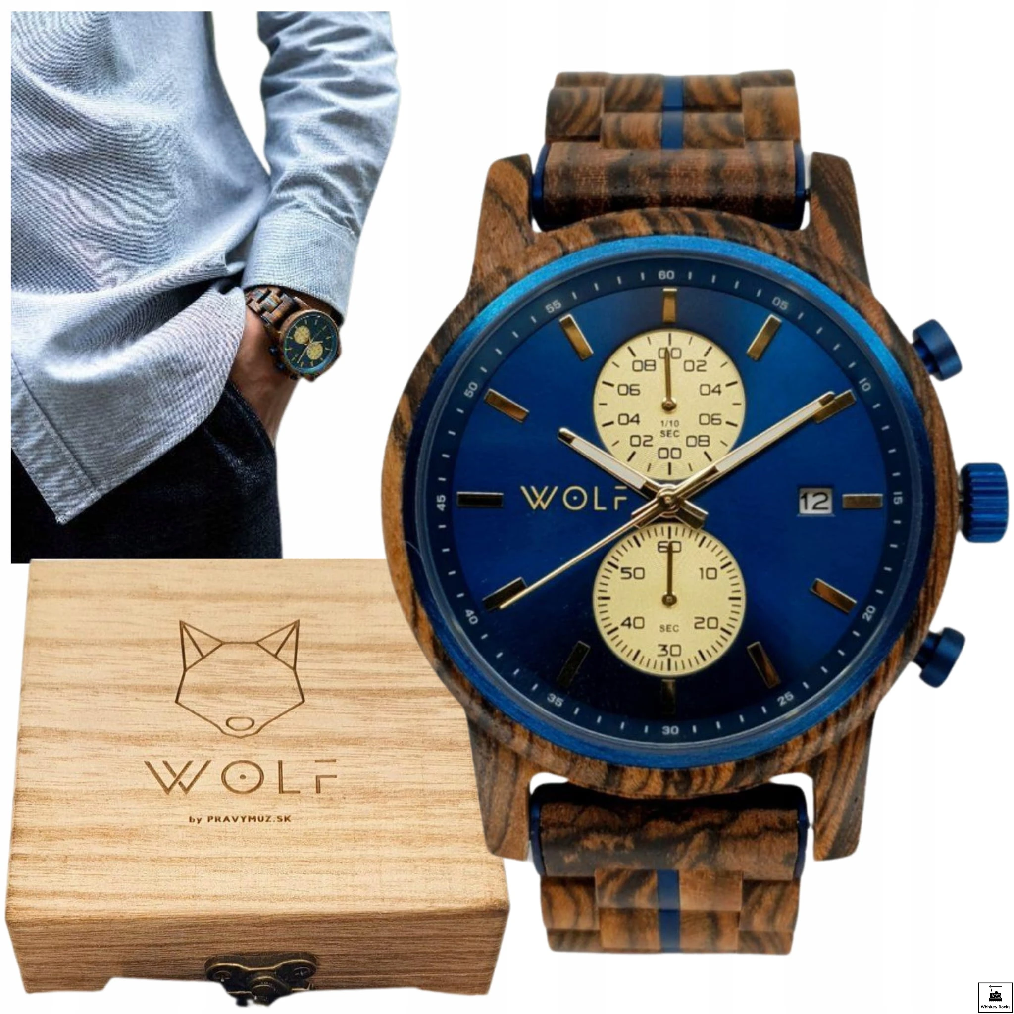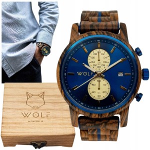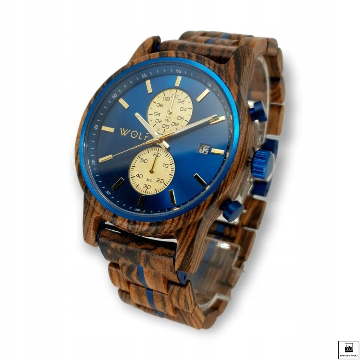 Zegarek Wolf Maestra Męski Luksusowy z Chronografem - Drewno Zebrowe