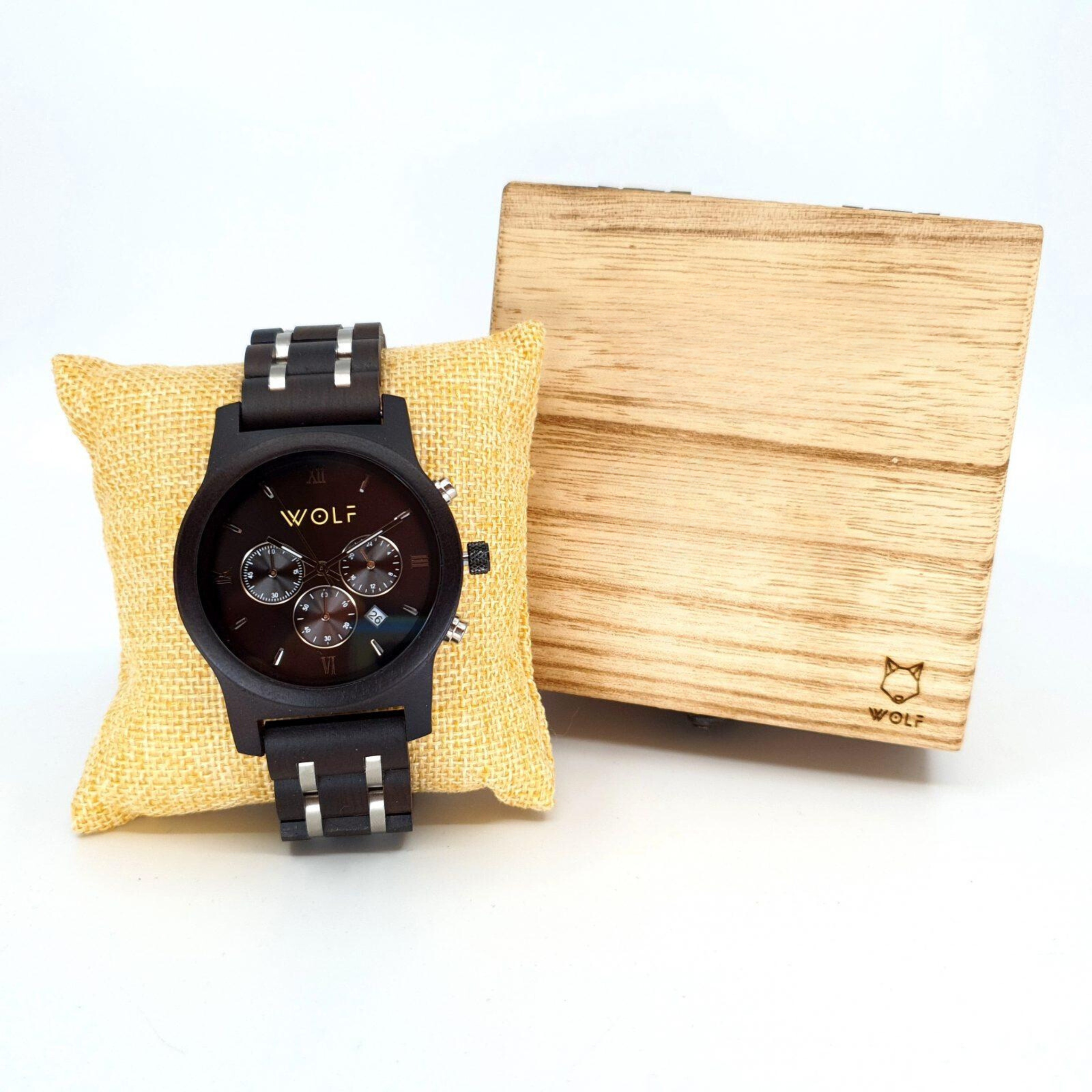 Zegarek Wolf Terreno Męski Luksusowy z Chronografem - Drewno Hebanowe