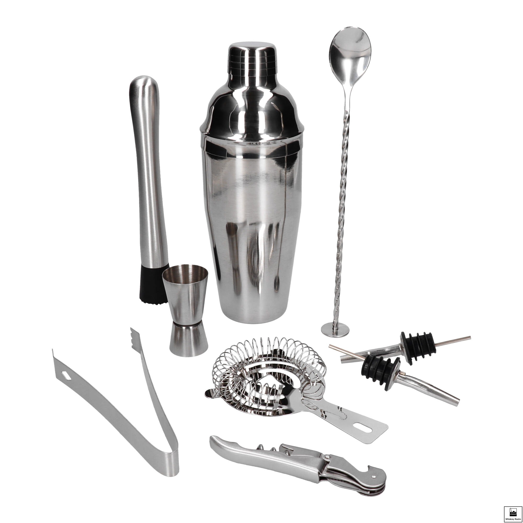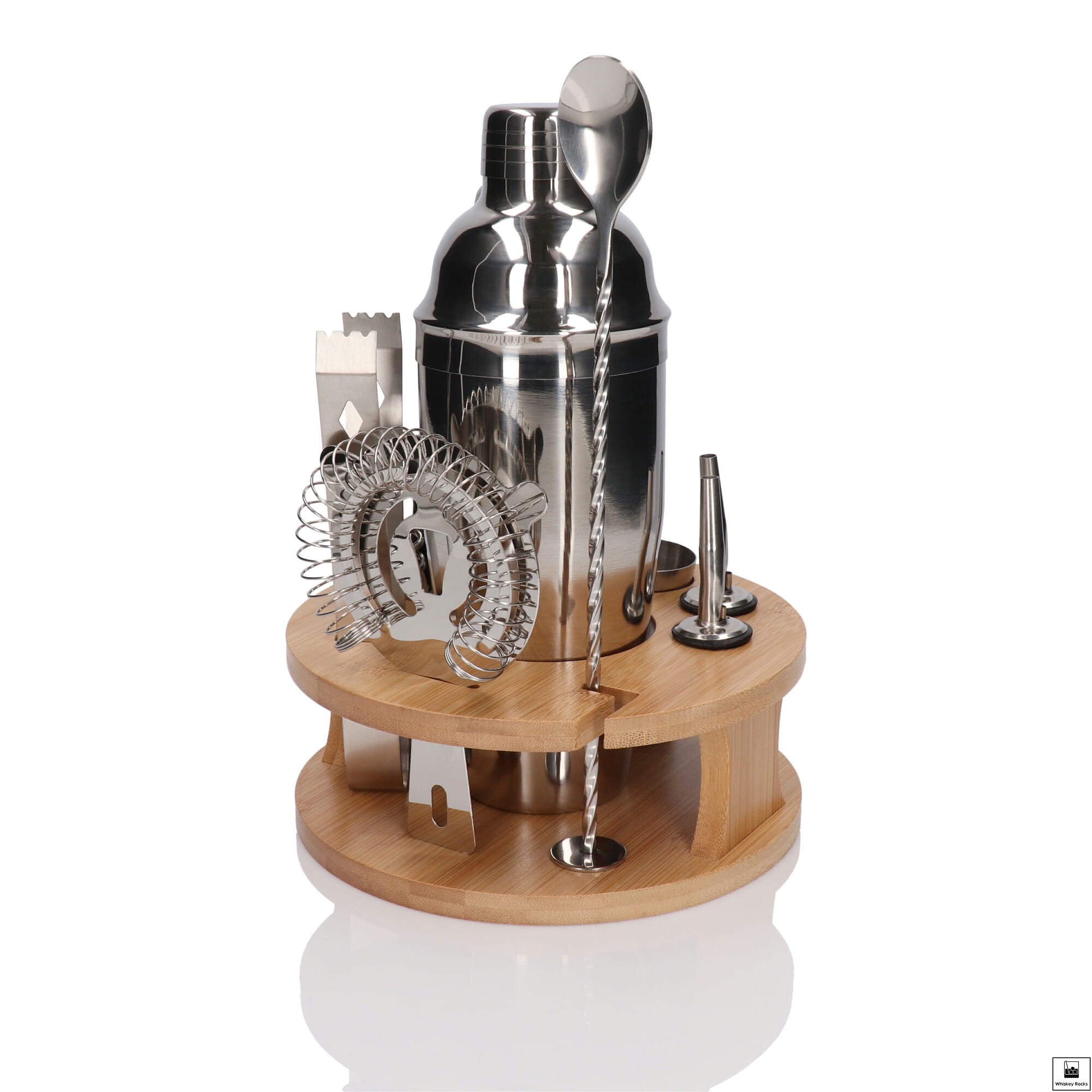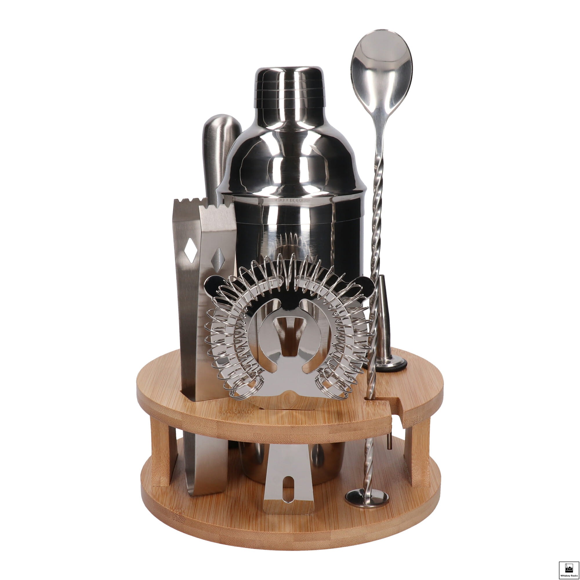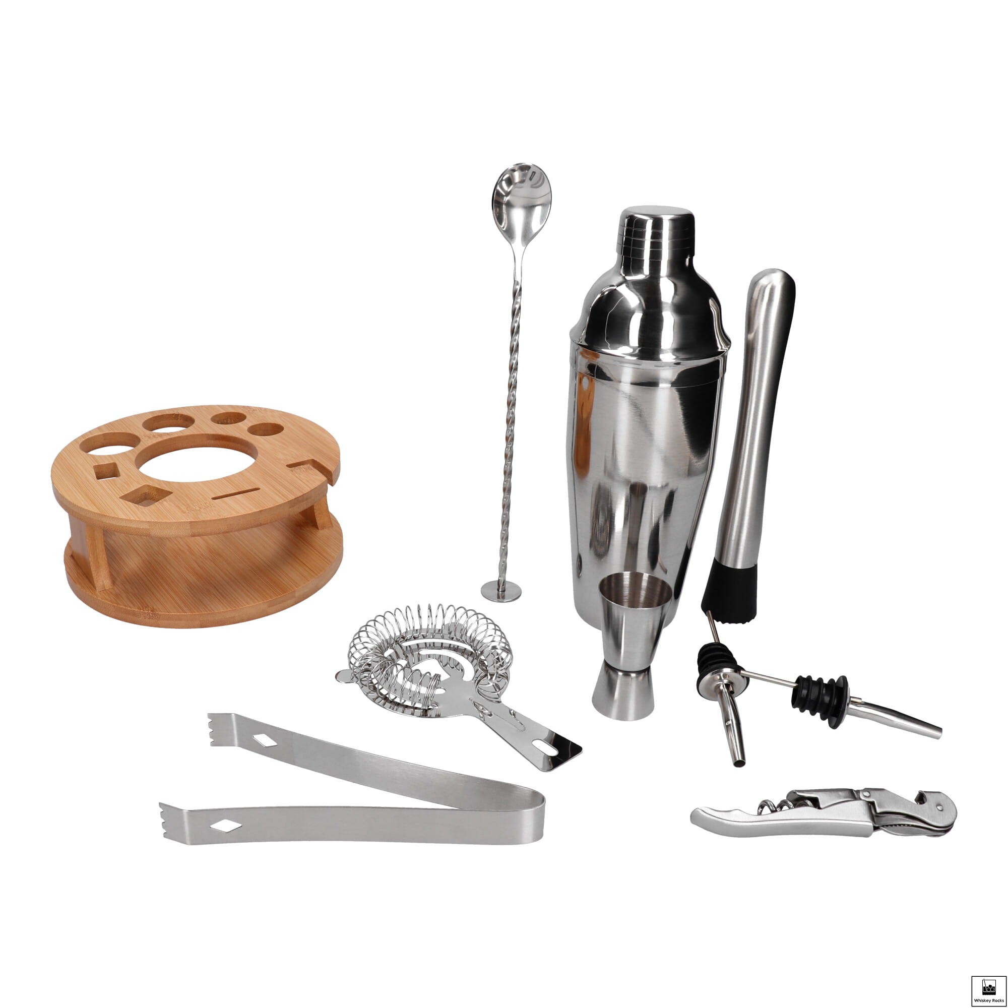 Zestaw barmański 10 el z okrągłą podstawką srebrny