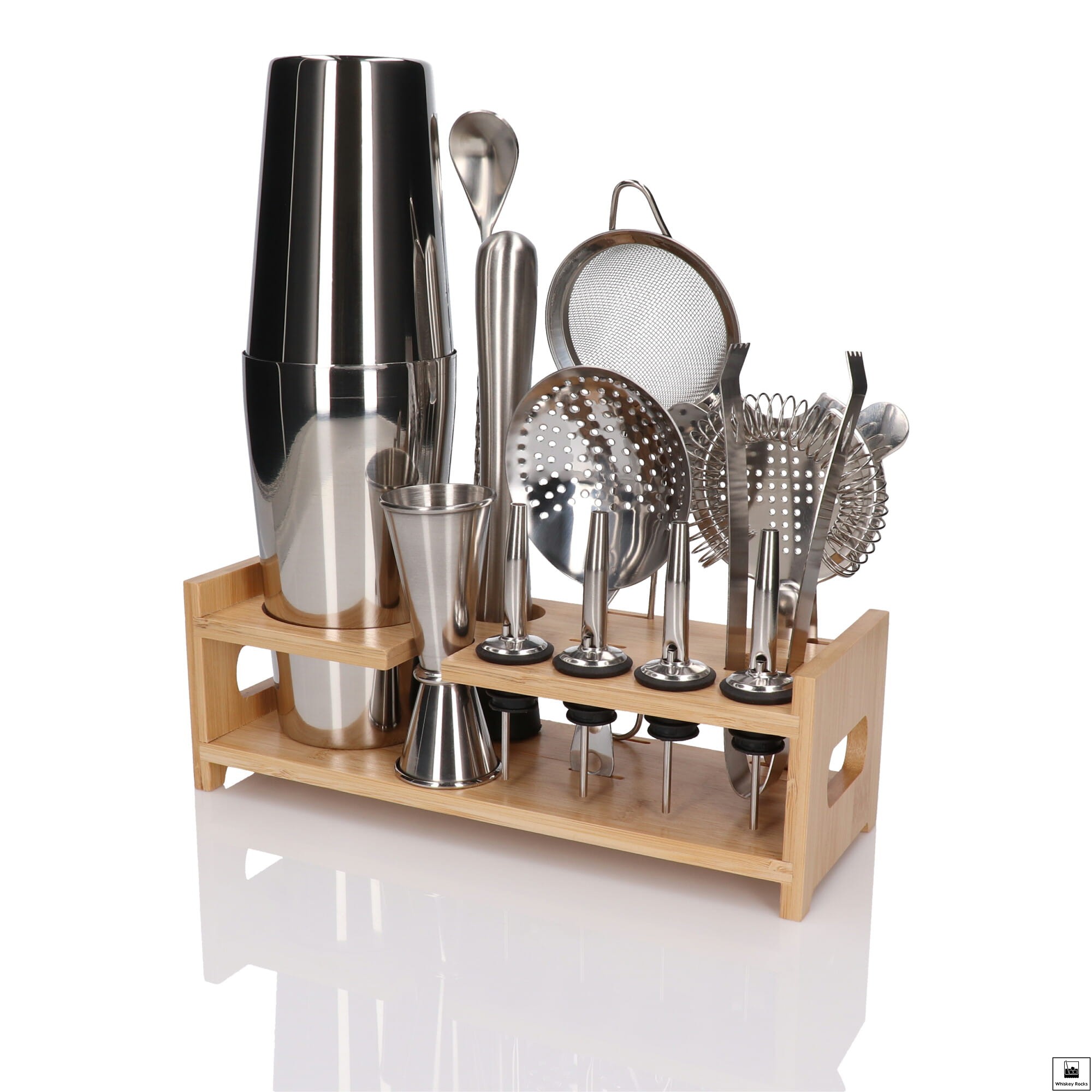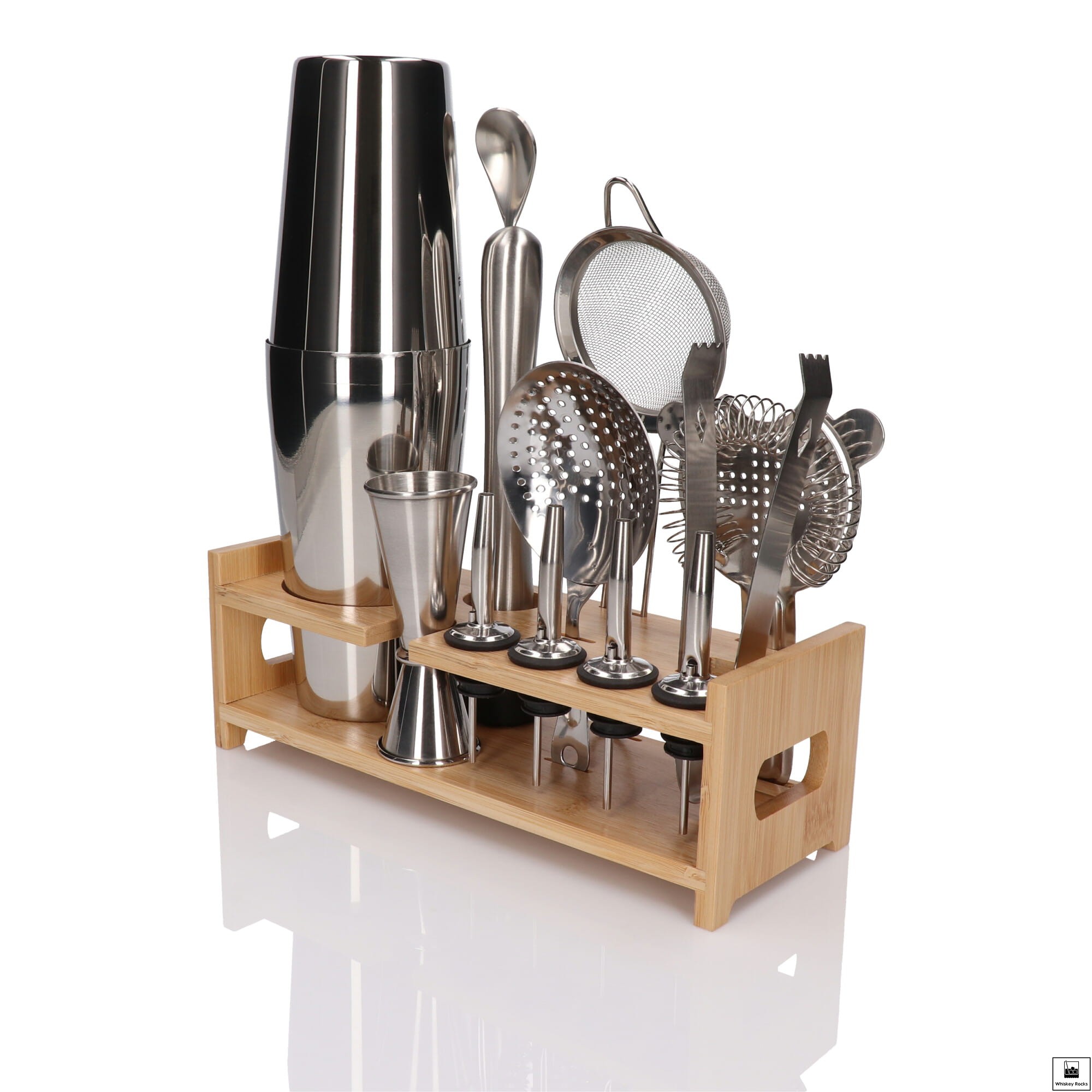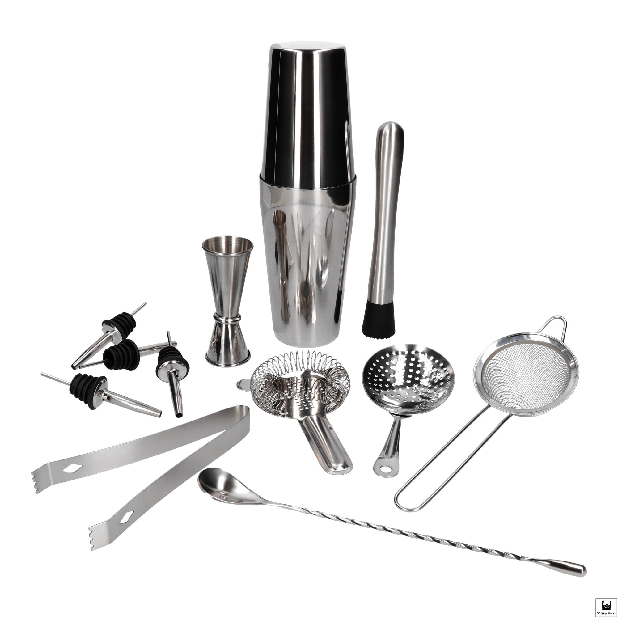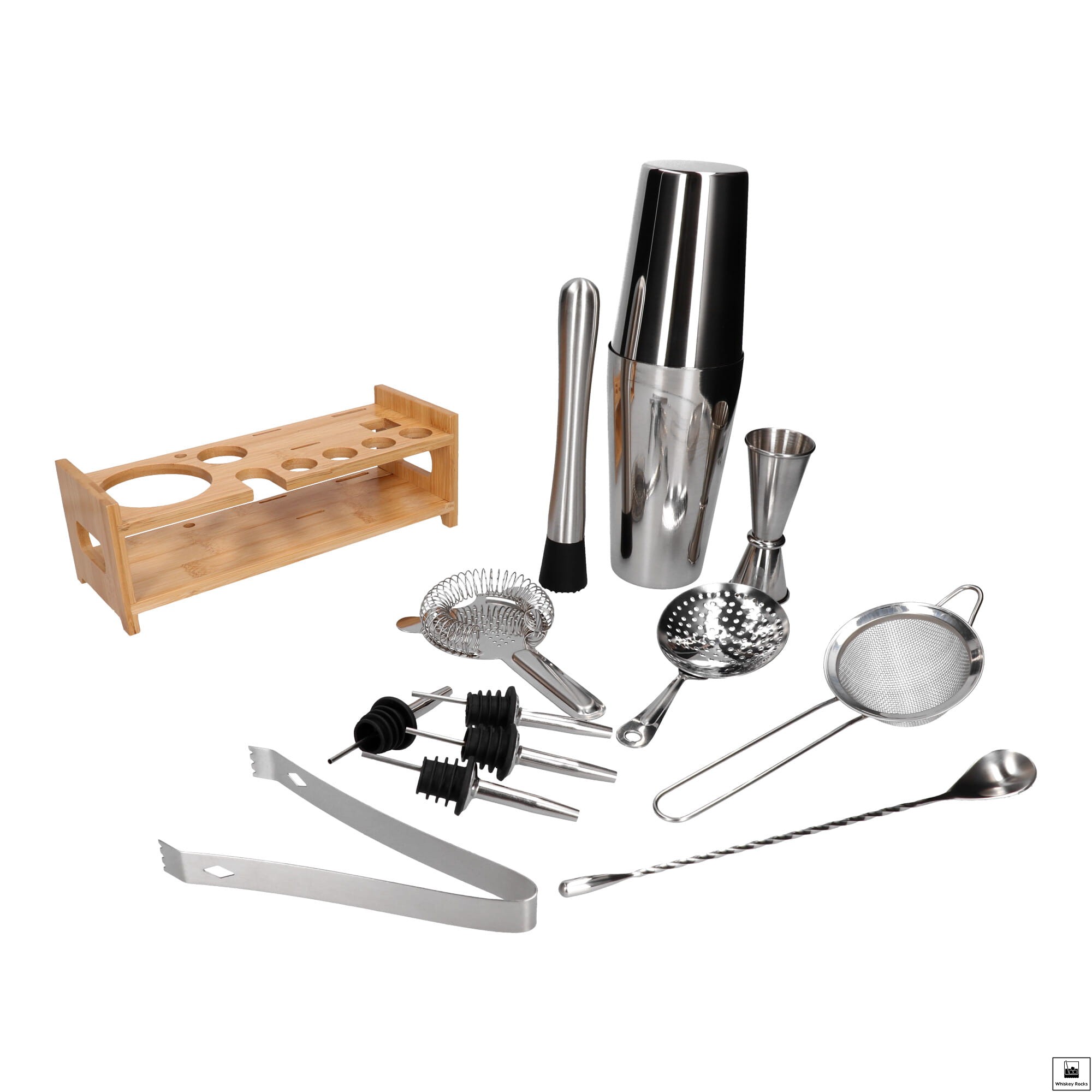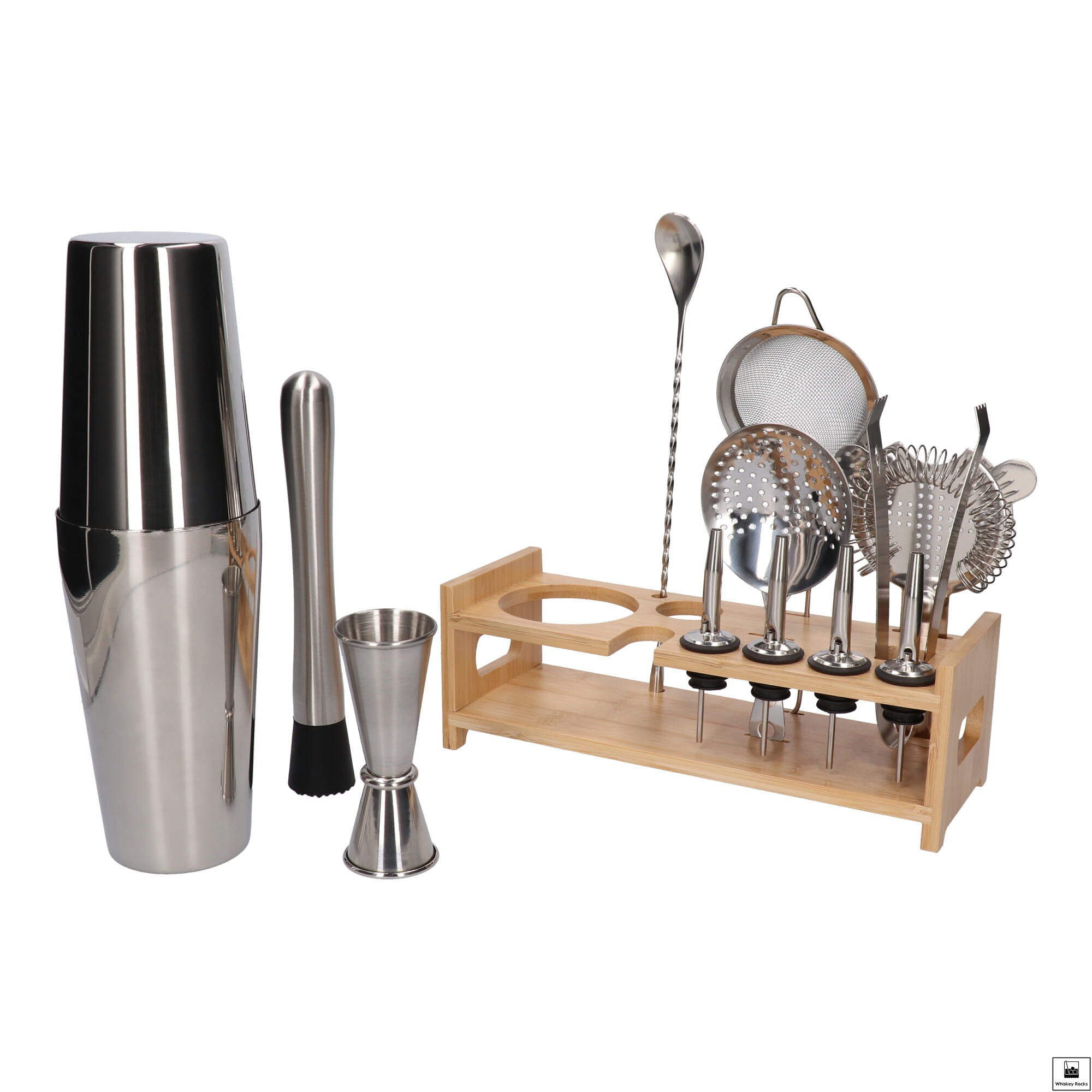 Zestaw barmański 14 el z podstawką srebrny shaker Tin on tin