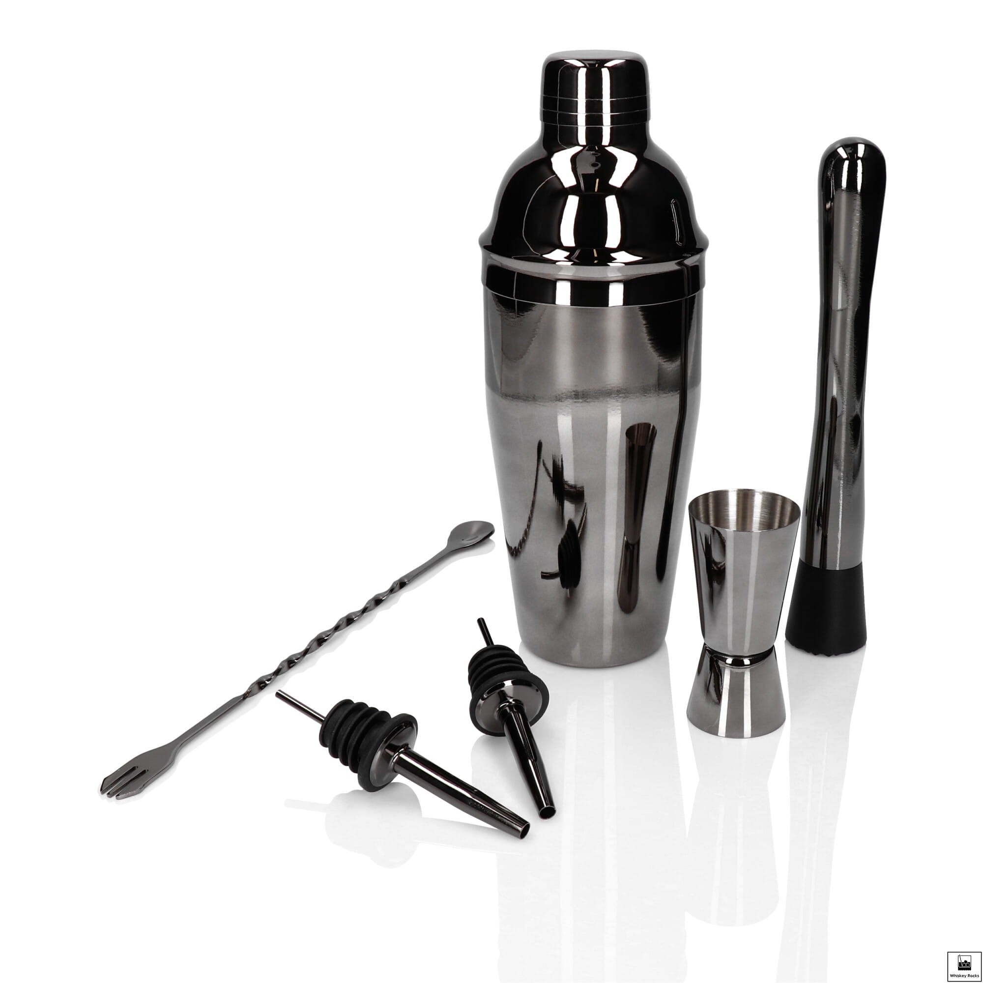 Zestaw barmański 6 el - shaker Cobbler 750 ml czarny połysk