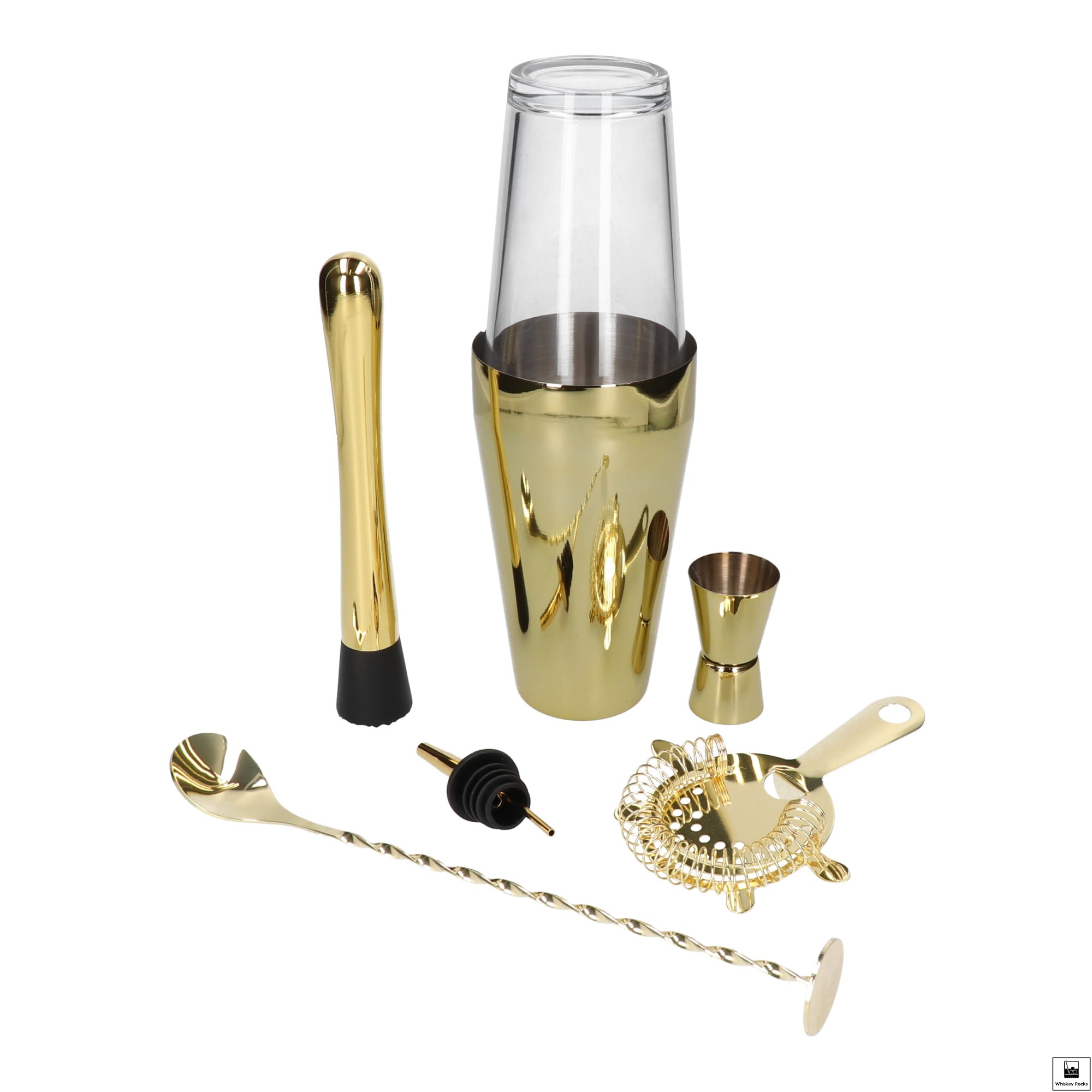 Zachwycający design sprawia, że cały zestaw prezentuje się ekskluzywnie – niejeden profesjonalny barman nie powstydziłby się używania go na co dzień. Każdy element został wykonany z najwyższej jakości stali nierdzewnej, dzięki czemu zarówno złota łyżka barmańska, jak i shaker, do którego są wrzucane wszystkie składniki, nie mają wpływu na smak napoju.