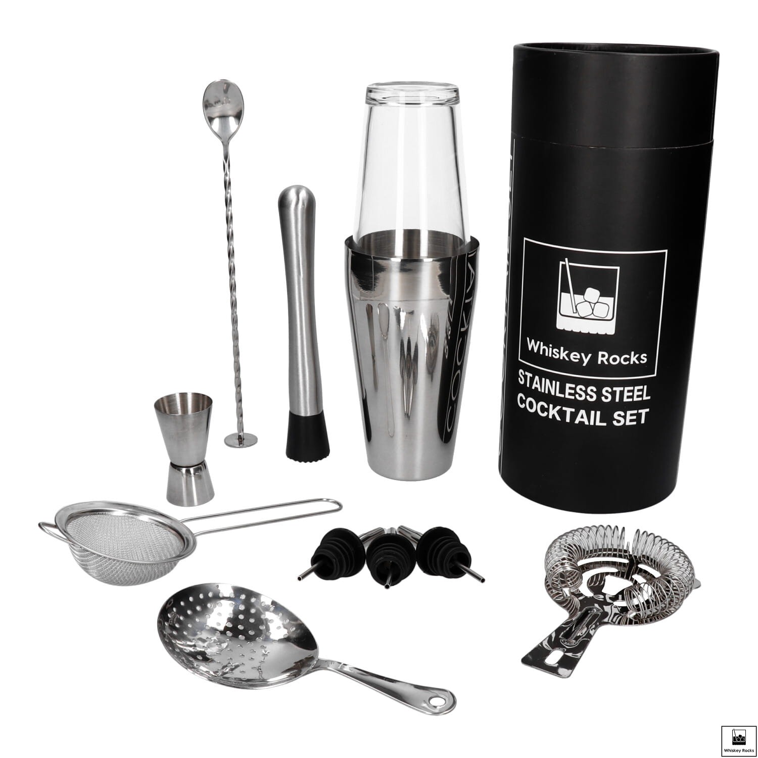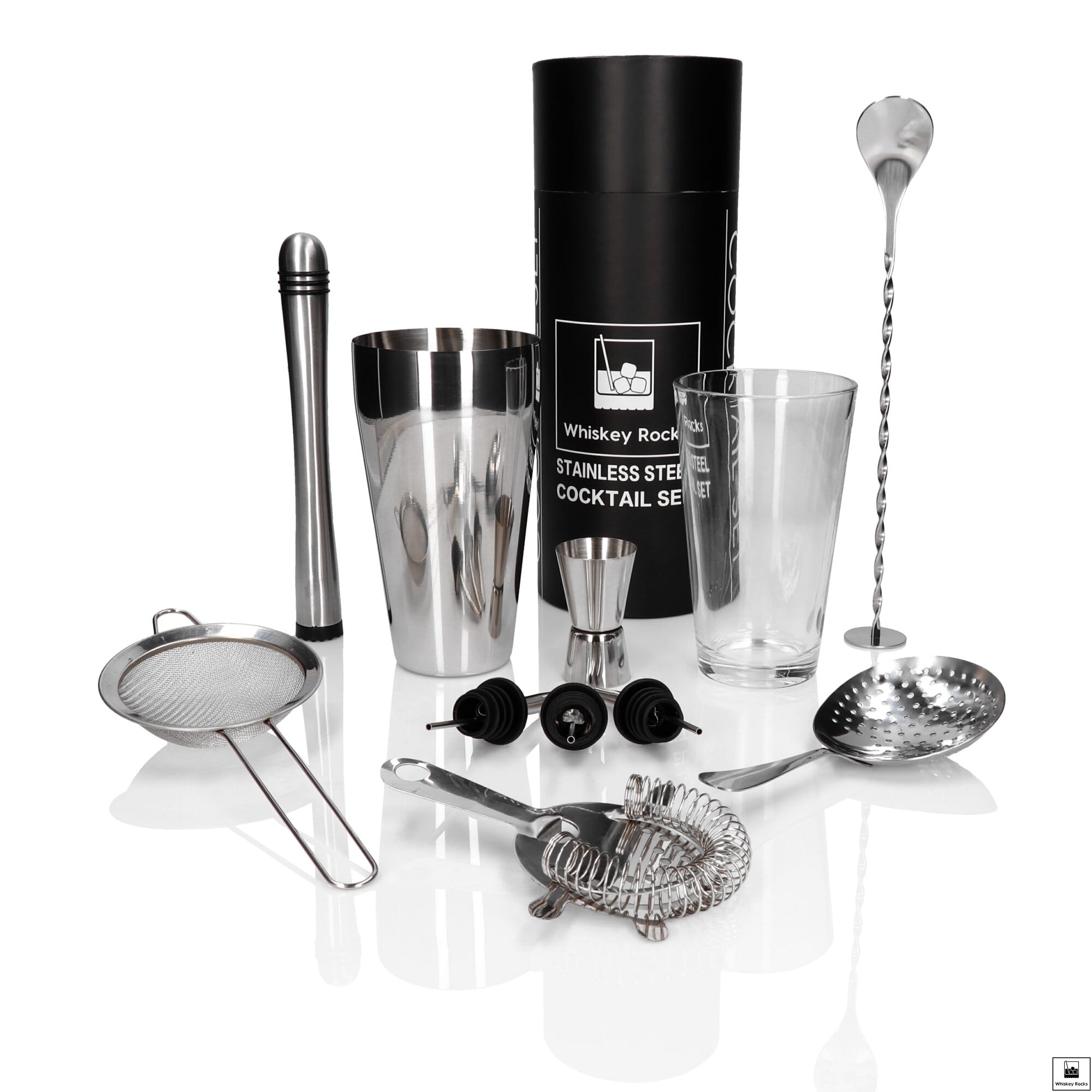 Zestaw barmański prezentowy w tubie -11 el srebrny