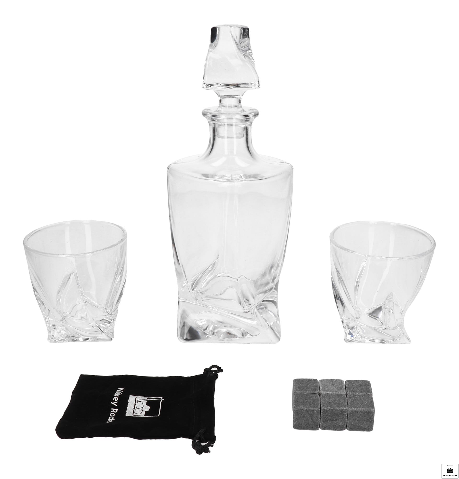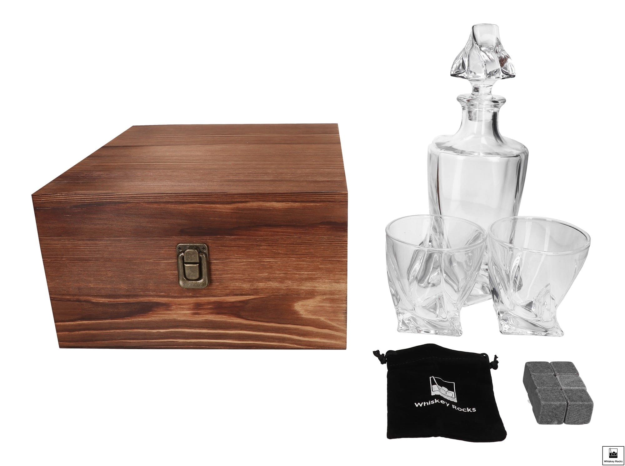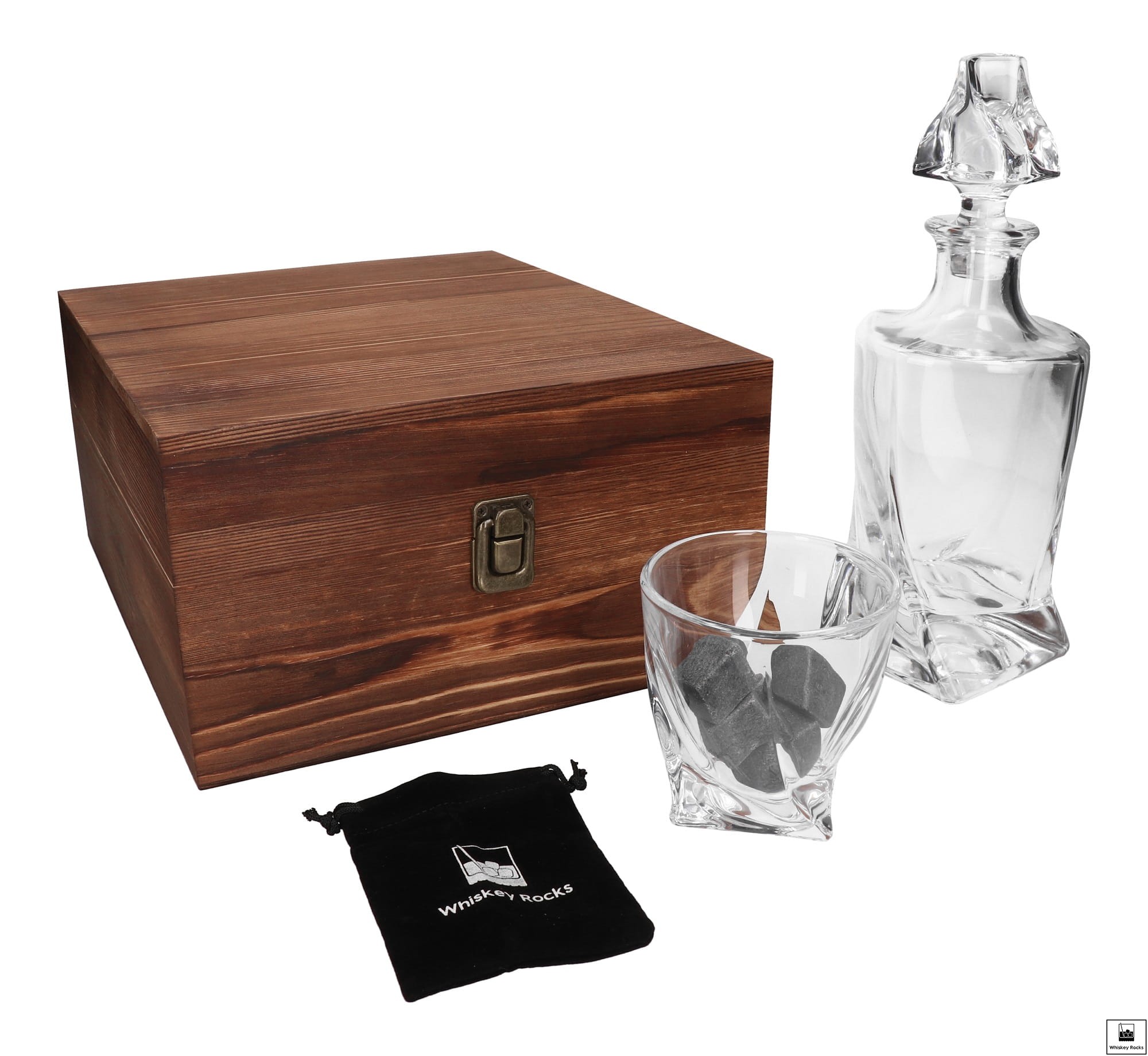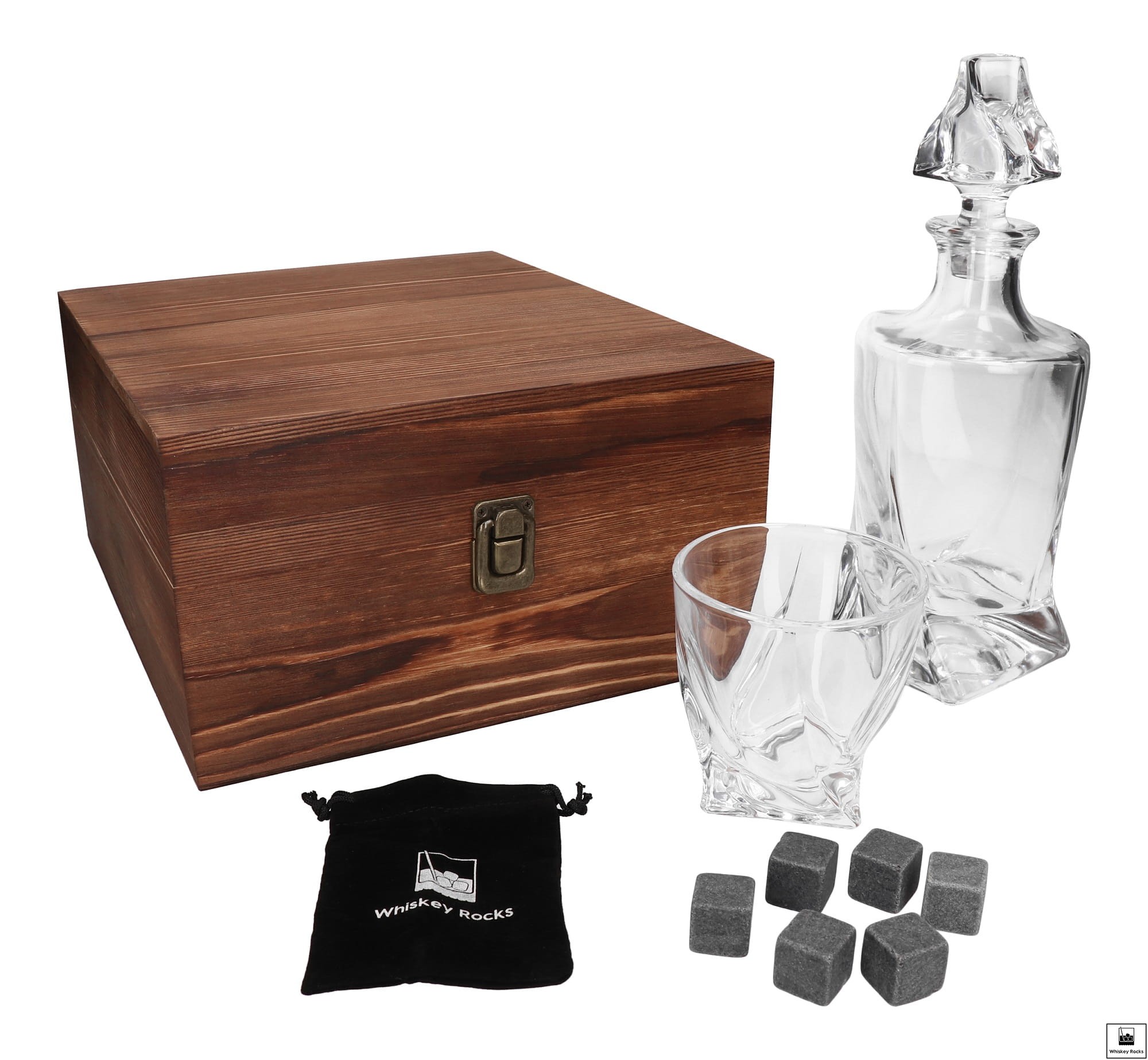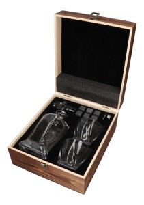 Zestaw prezentowy do whisky - karafka, 2 szklanki oraz kamienie do whisky w skrzynce