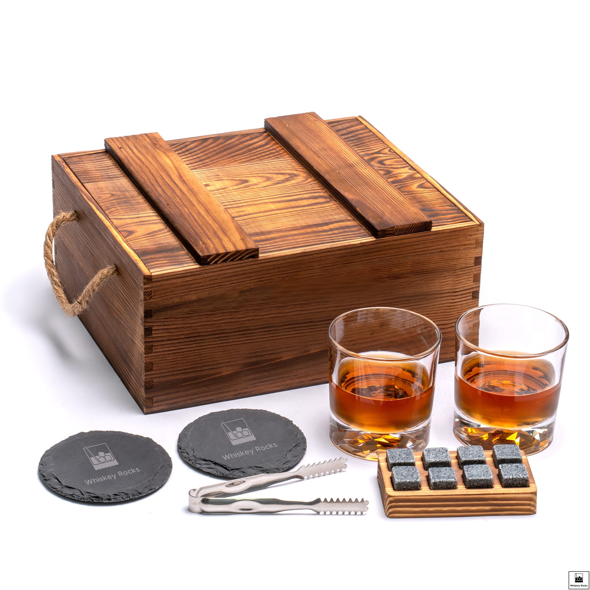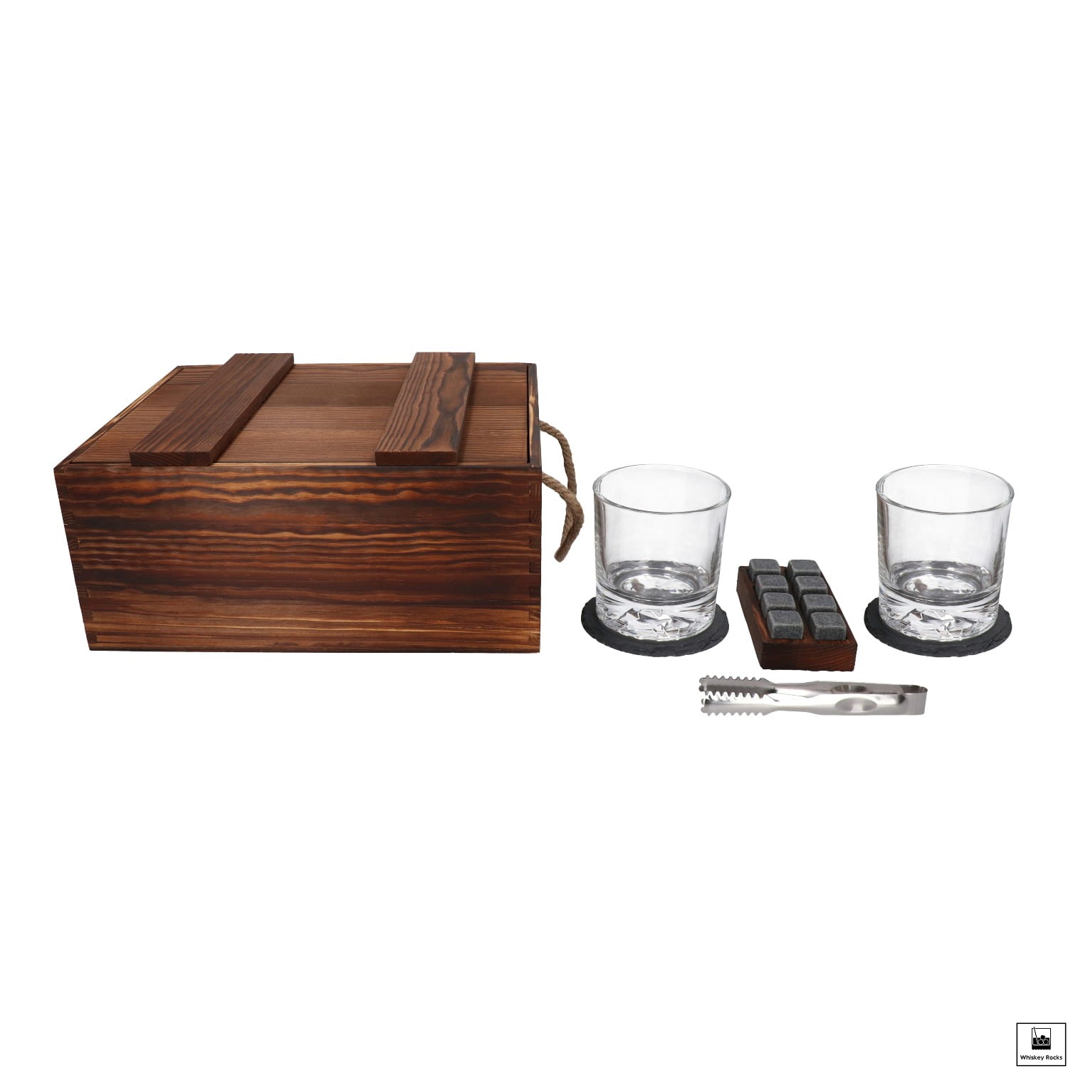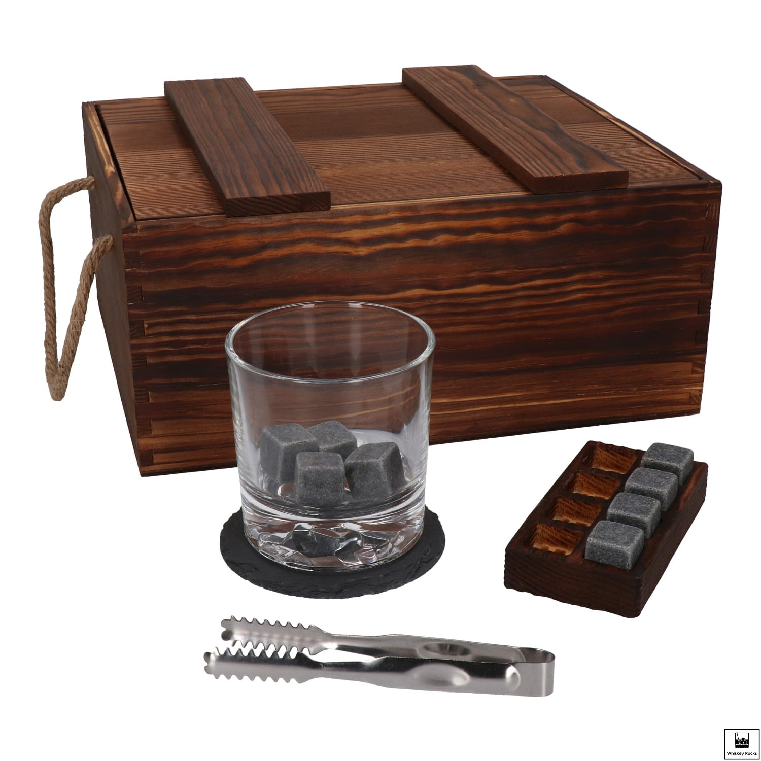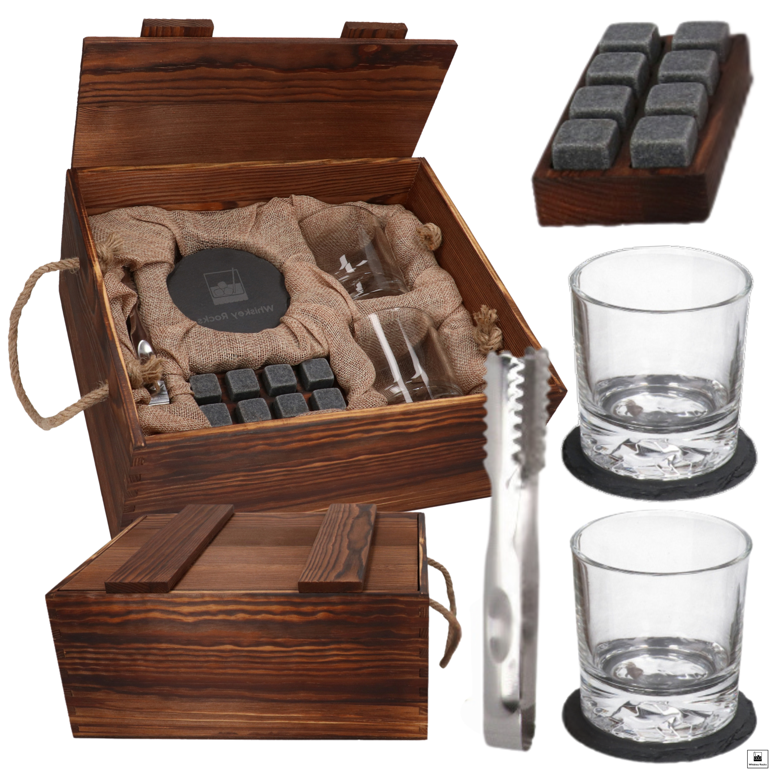 ⭐️ Luksusowy design: Szklanki "Mountain" i elegancka drewniana skrzynka nadają zestawowi wyjątkowego charakteru.