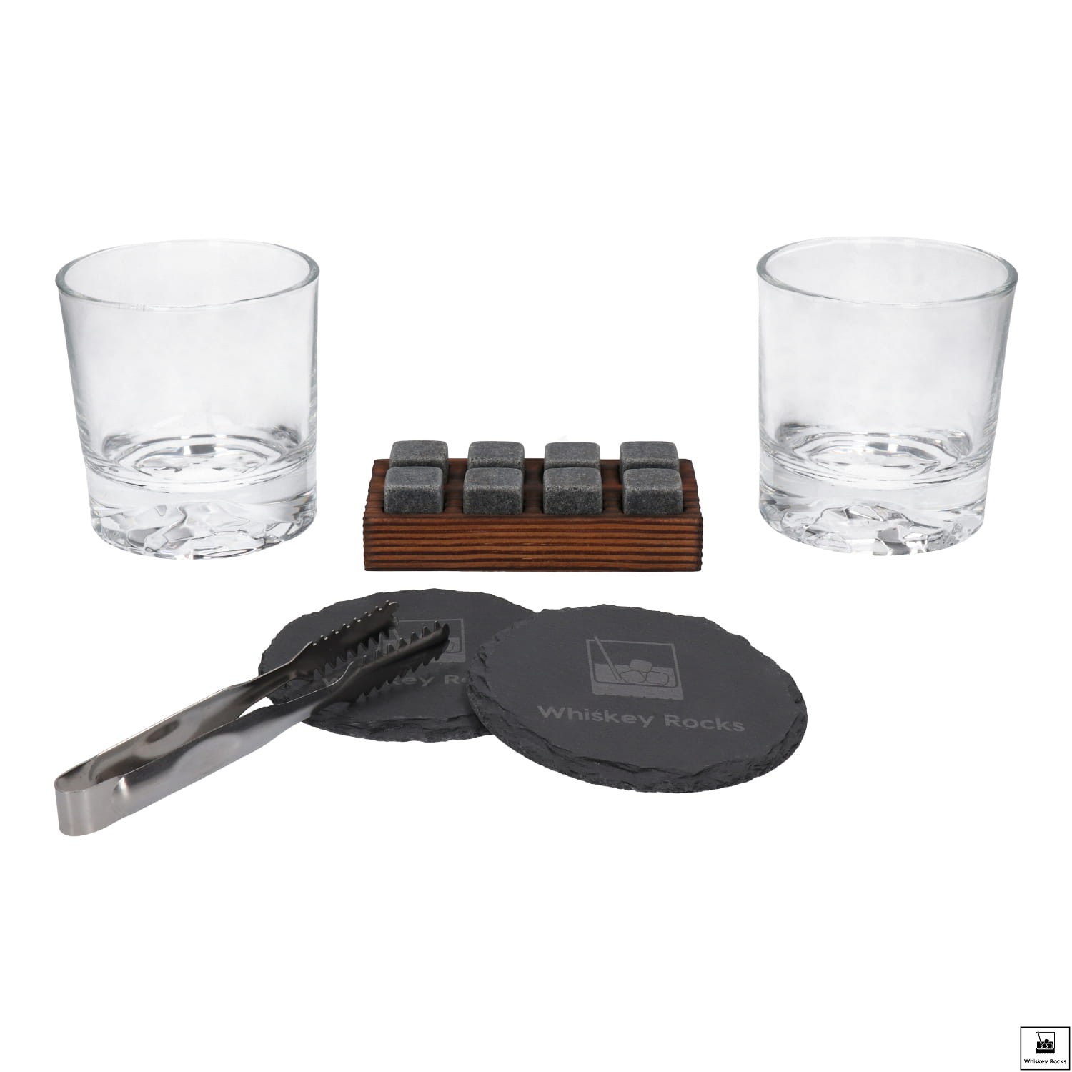 Zestaw prezentowy premium z uchwytami do whisky to luksusowa propozycja dla miłośników tego szlachetnego trunku. W skład zestawu wchodzą dwie eleganckie szklanki "Mountain" o pojemności 300 ml, które w połączeniu z ośmioma kamieniami do whisky pozwalają na serwowanie idealnie schłodzonego napoju bez ryzyka jego rozcieńczenia. Dodatkowo, zestaw zawiera dwa okrągłe podkładki z łupka, drewnianą tackę z sosny, stalowe szczypce oraz wszystko zapakowane w elegancką drewnianą skrzynkę. To idealny wybór na prezent dla każdego konesera whisky.